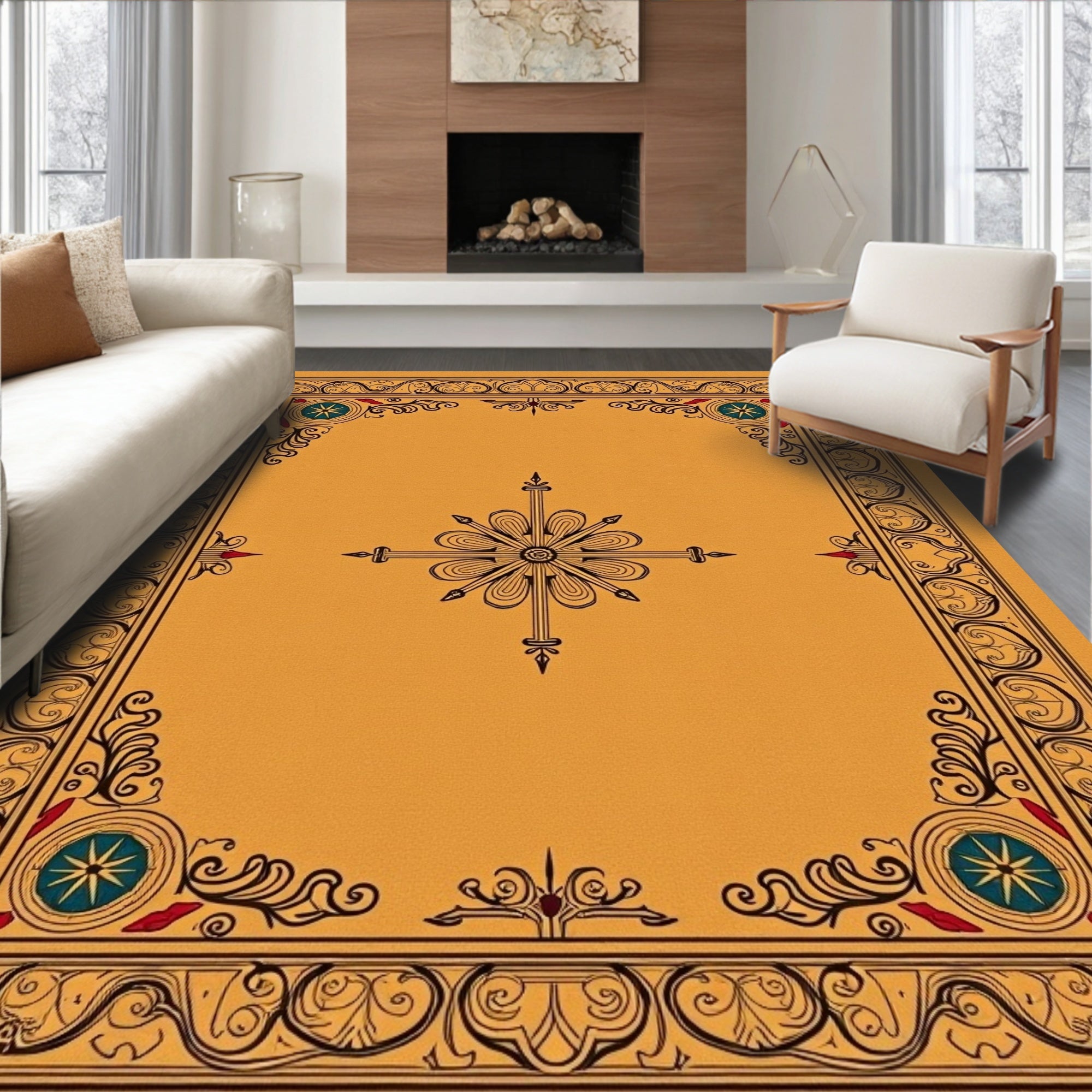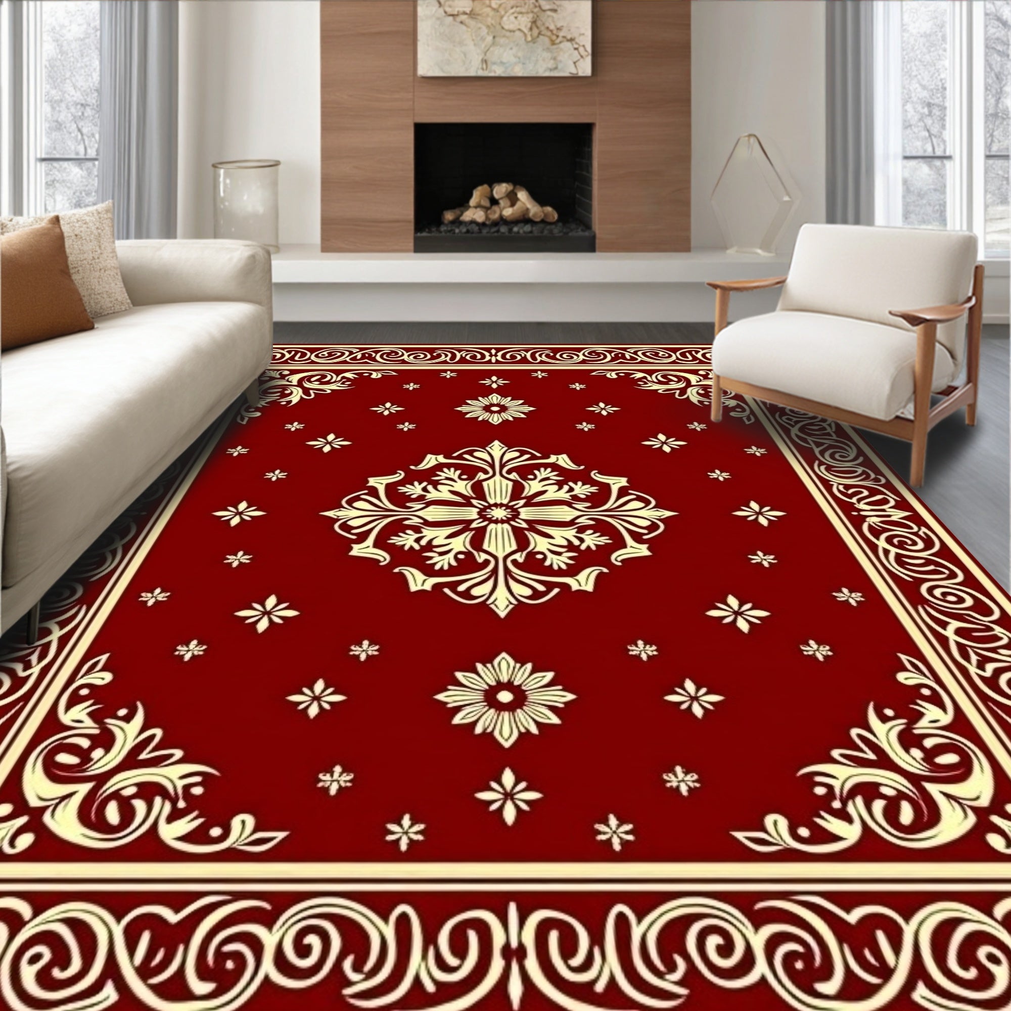 Holiday Damask Scroll Machine Floor Covering(Red)