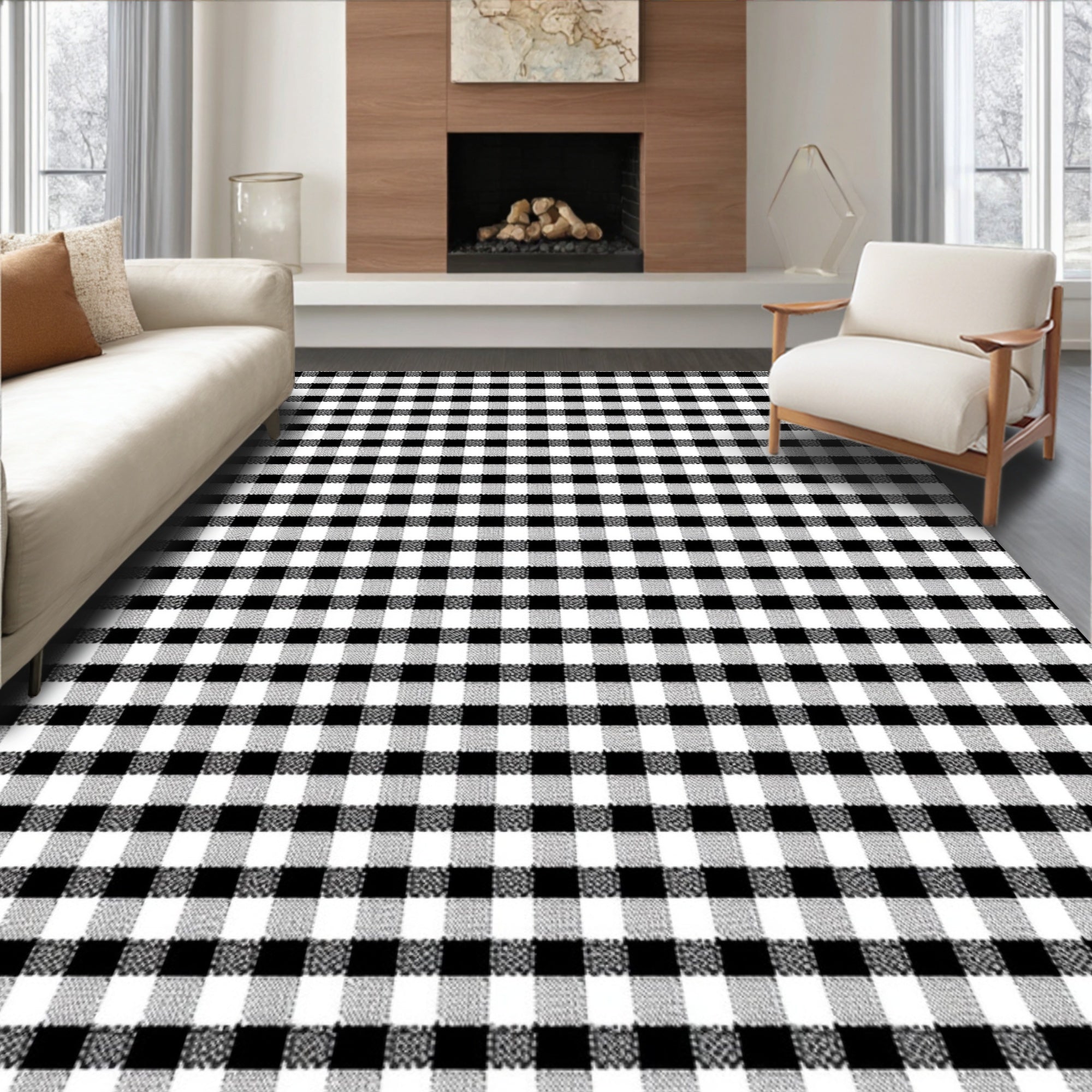 Holiday Checkered Floor Covering with Traditional Grid Design(Black)