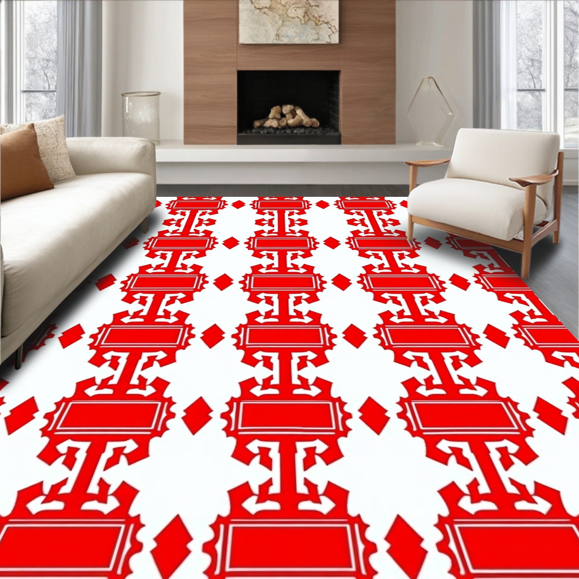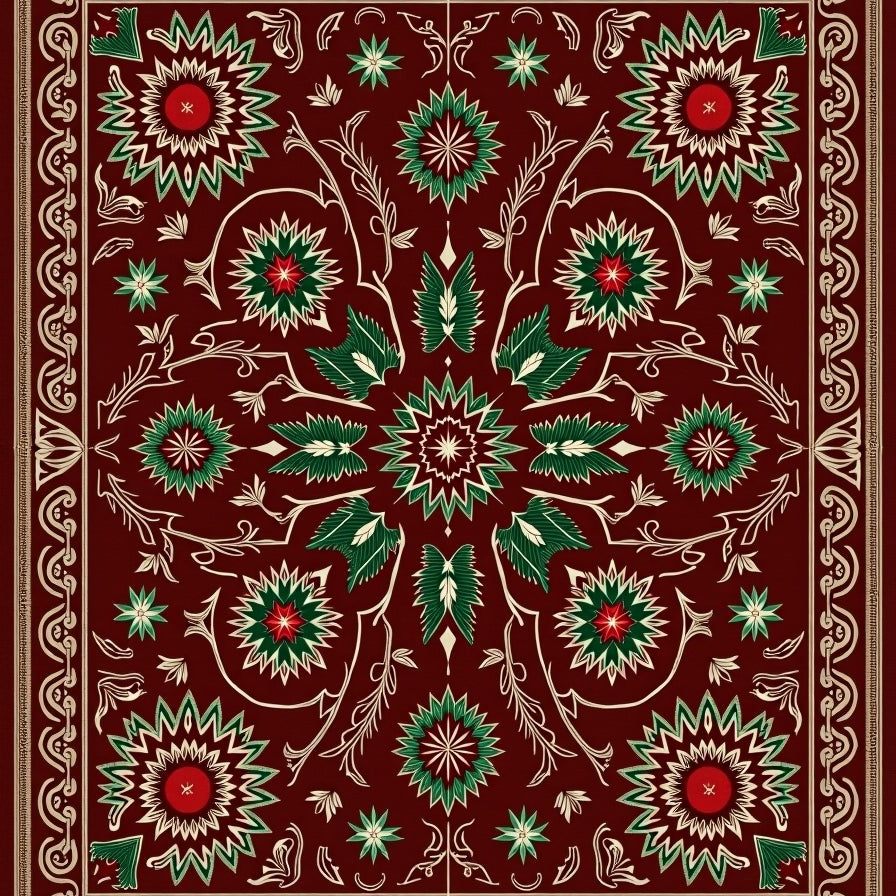 Holiday Festive Snowflake Area with Ornate Winter Motifs(Red)