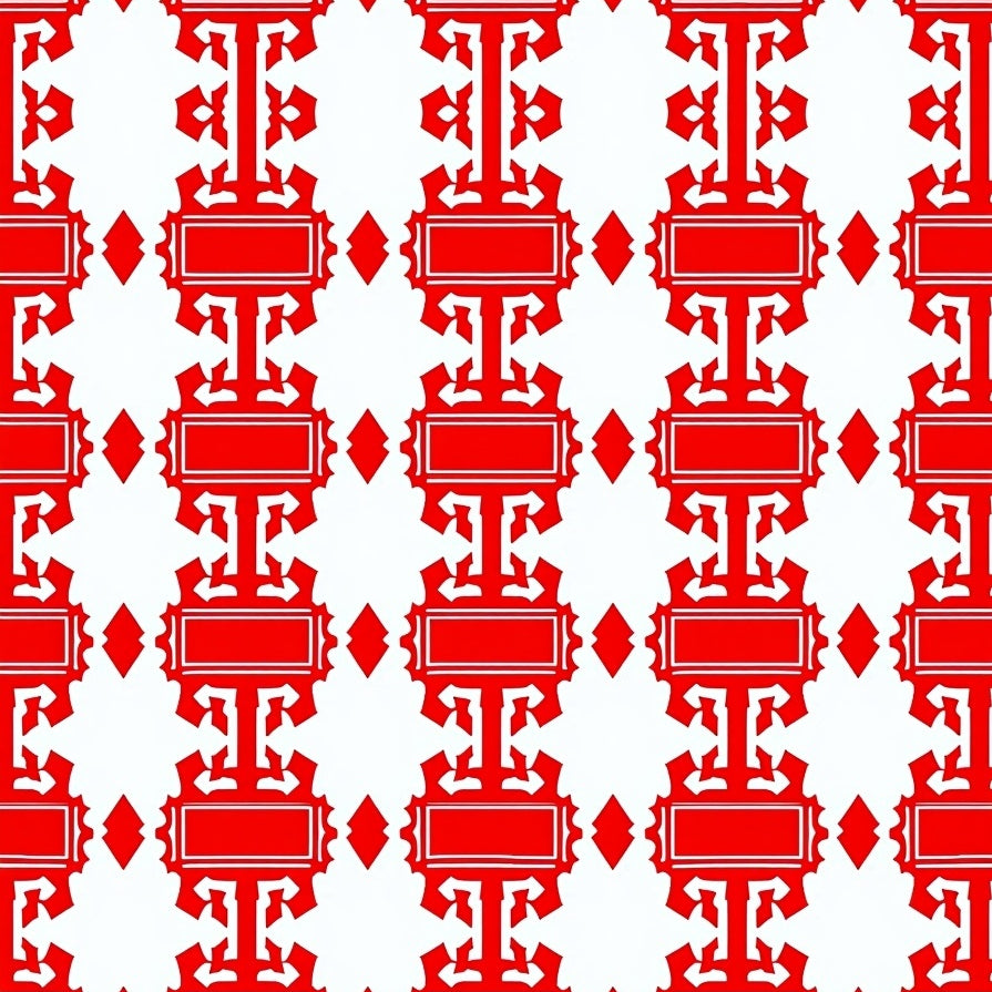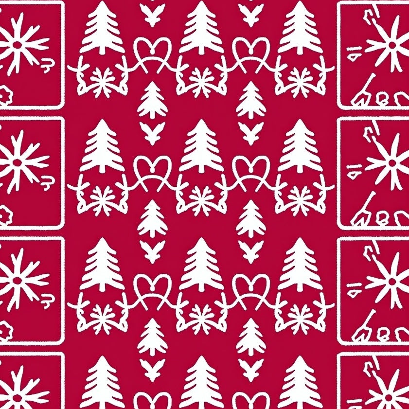 Holiday Fir Mosaic with Delicate Interlocking Snow Motifs(Red)