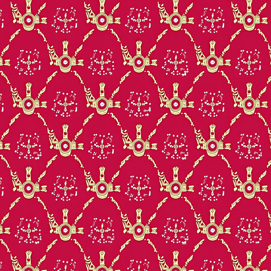 Holiday Marquetry Featuring Interlocking Ornaments and Twinkling Snow(Red)