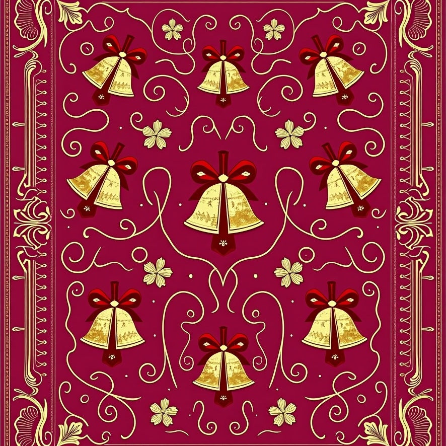 Holiday Jingle Bell Cascade Half Moon Doormat with Festive Ribbon Swirls(Gold)