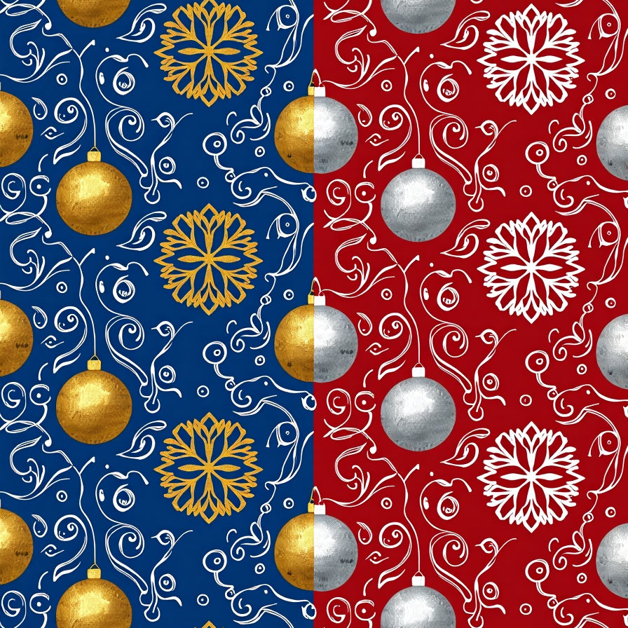 Holiday Ornament Array with Interlocking Plaid and Stylized Pine Sprigs(Red)
