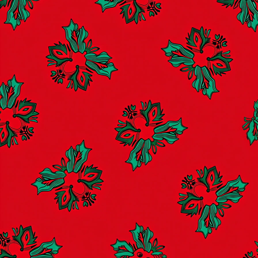 Holiday Pine and Berry with Interlocking Swirls(Red)