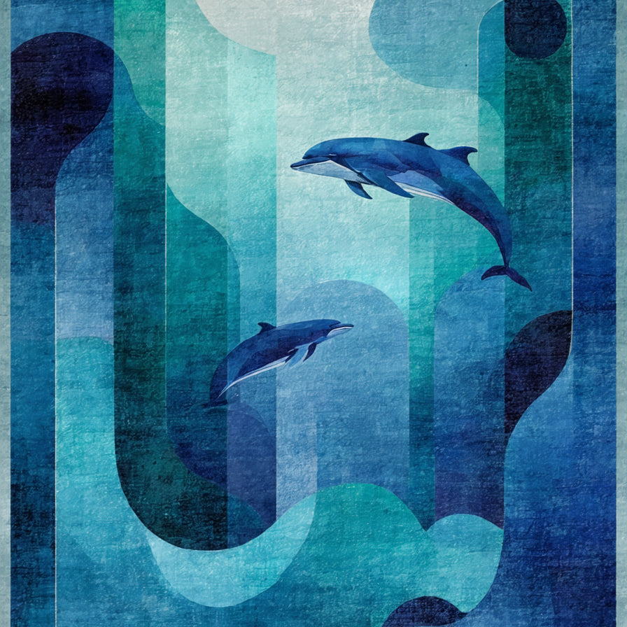 Illusion Nautical with Fluid Octopus Tentacles and Dolphin School(Blue)