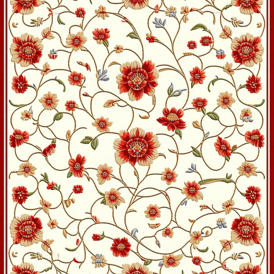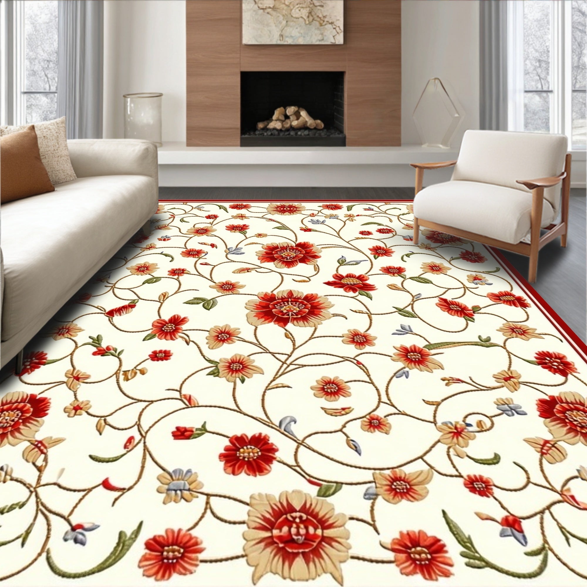 Artistic Floral Area Non Skid Backing Easy Clean Durable Low Pile(Beige)