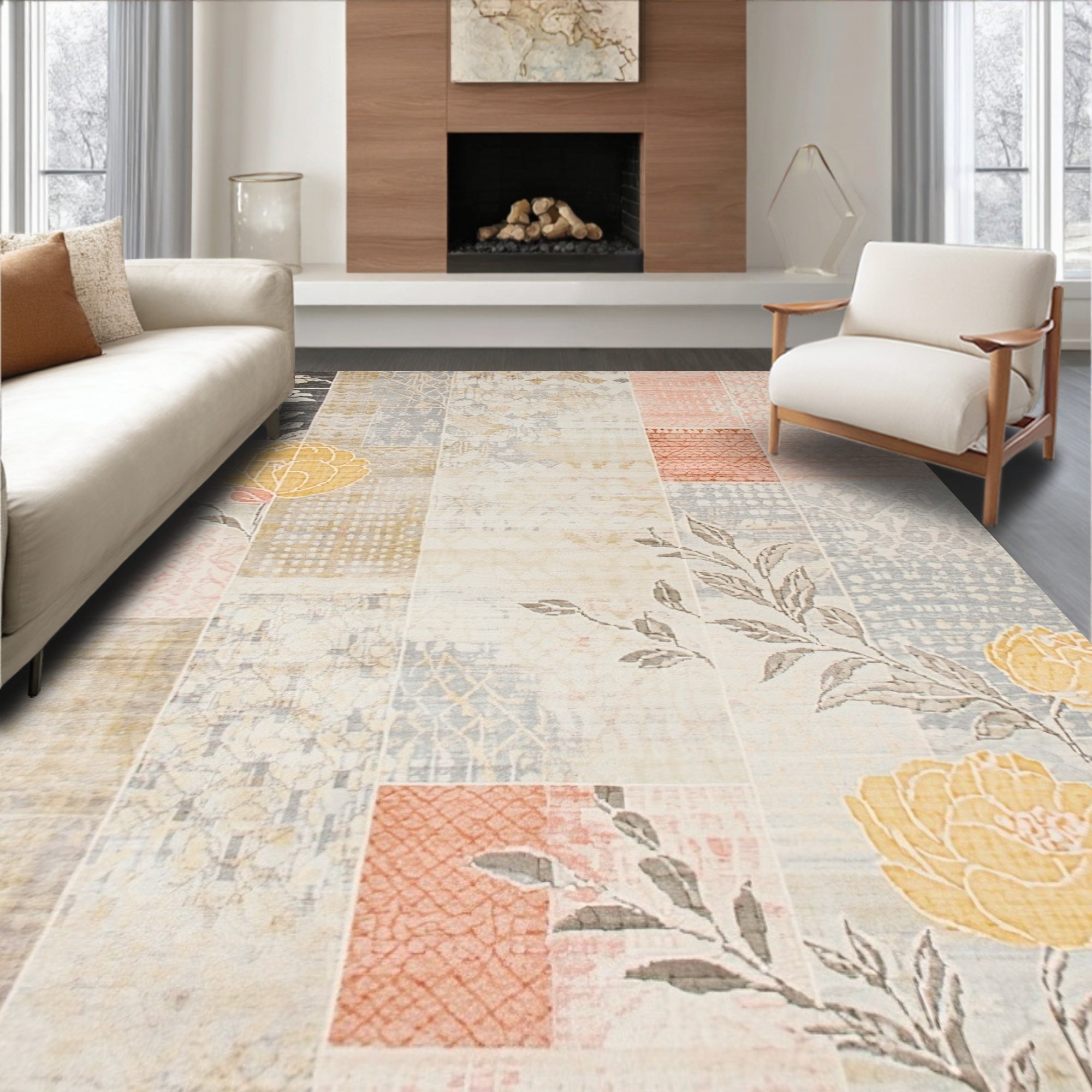Artistic Floral Patchwork Area for Contemporary Spaces(Beige)