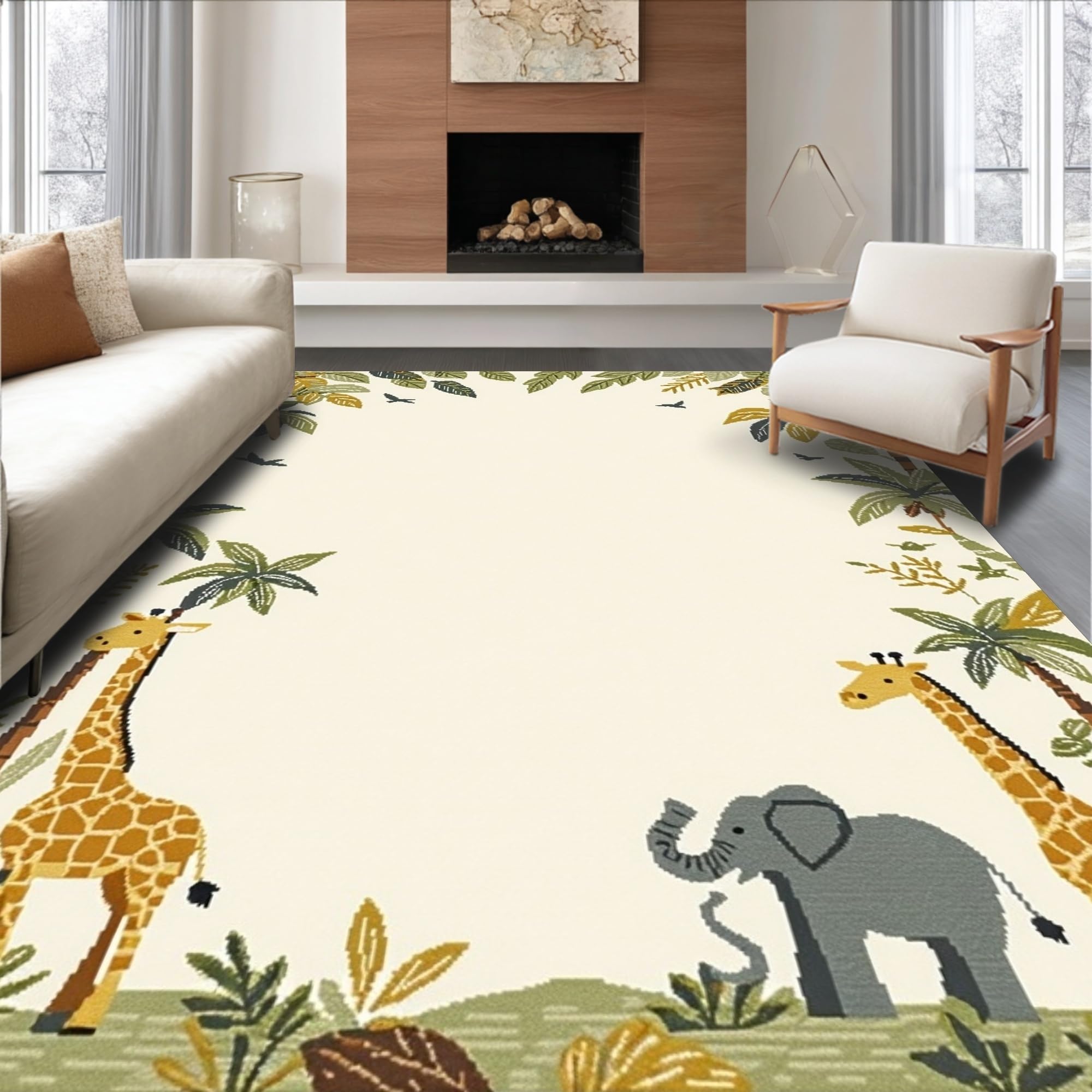 Kids Playroom Area Whimsical Woodland Animals(Beige)