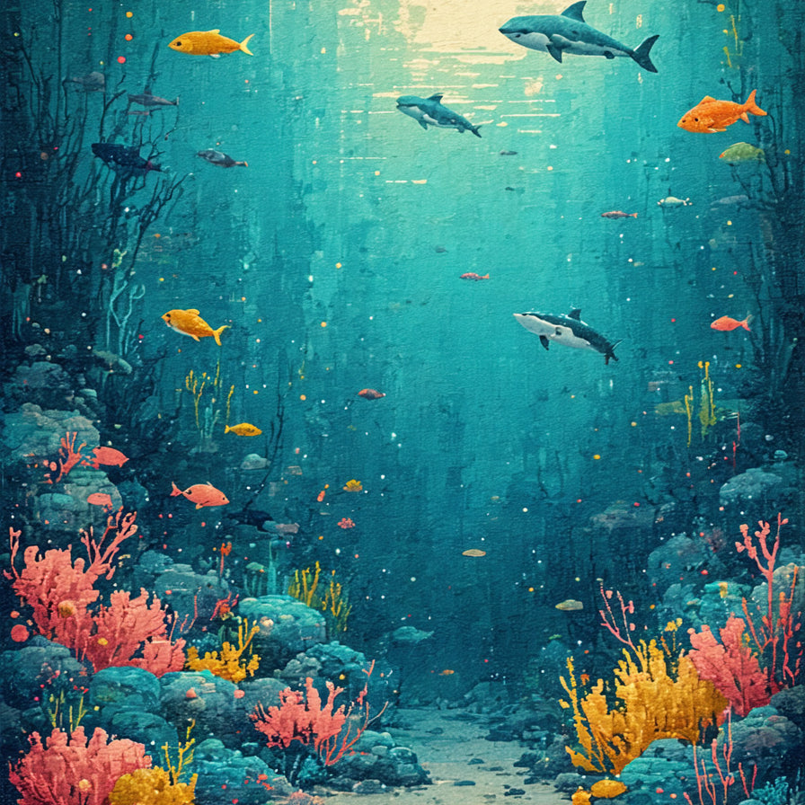 Kids Ocean Life Area Playful Sea Creature(Blue)