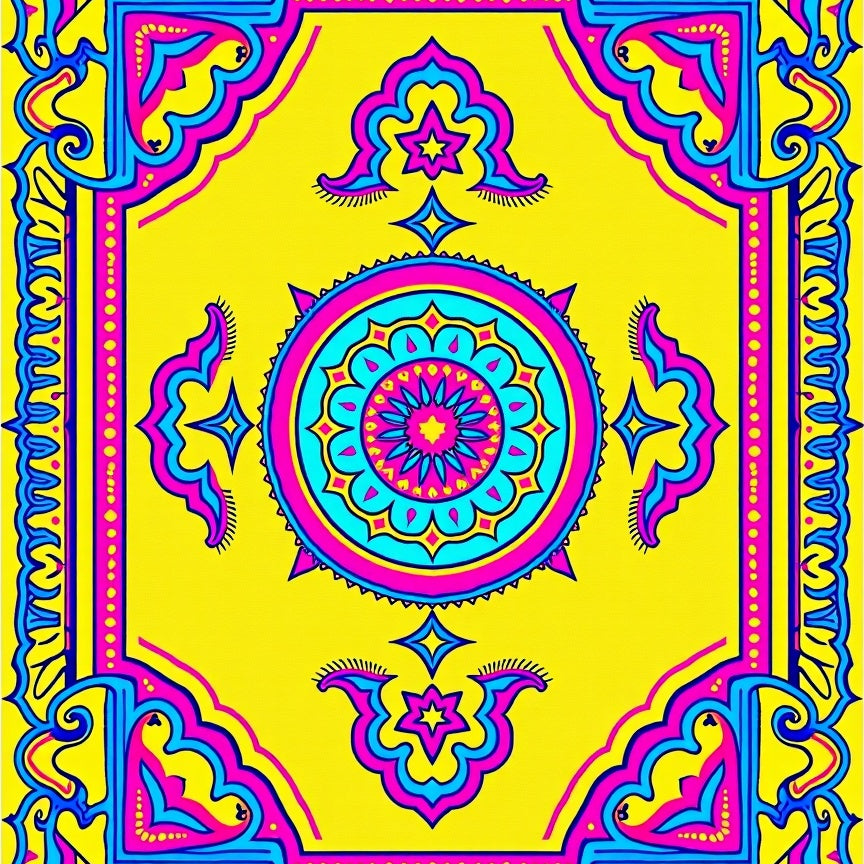 Interlocking Medallion Trellis with Vibrant Motif and Artistic Flourishes(Yellow)