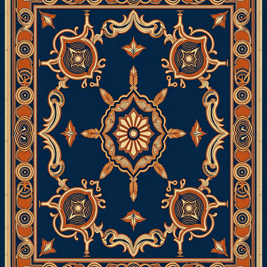 Interlocking Mosaic Medallion Motif with Artistic Gradient Effect(Navy Blue)