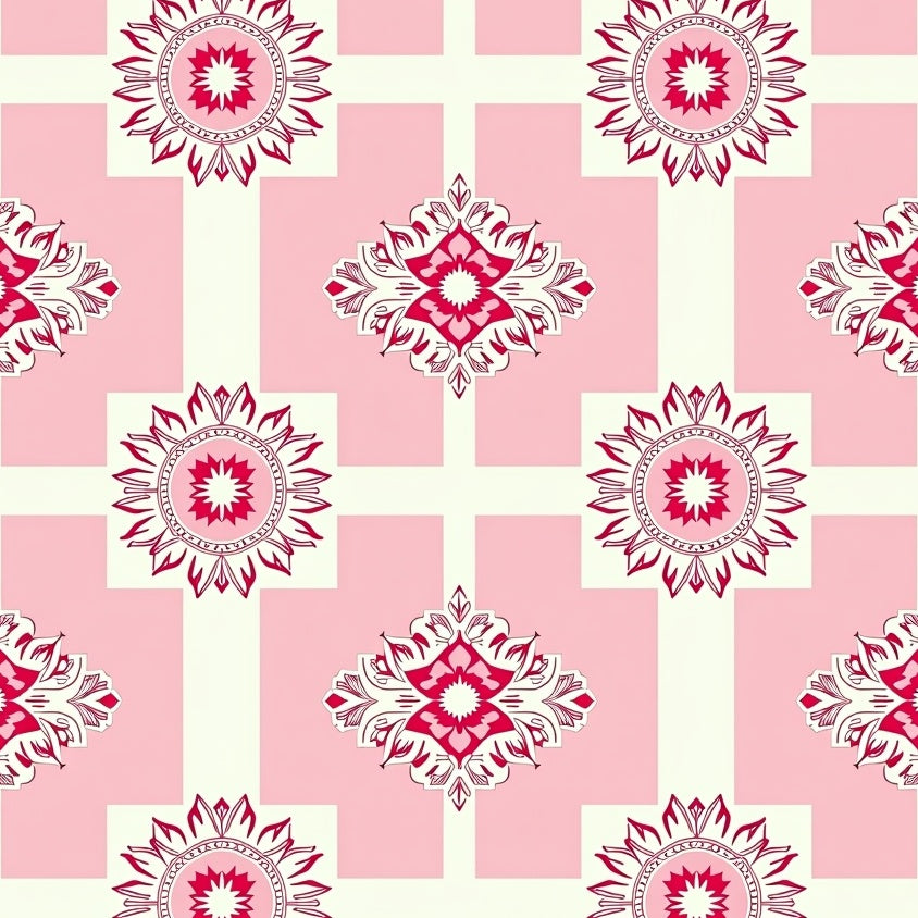Interlocking Trellis Motif with Subtle Lattice Accents and Vintage Charm(Pink)