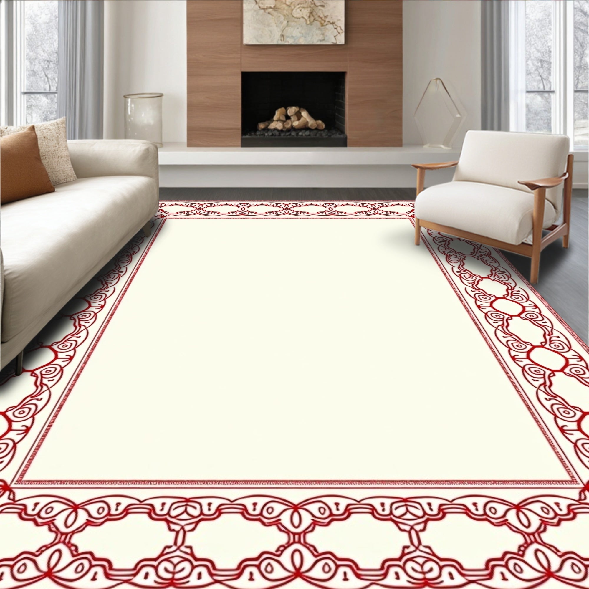 Interlocking Medallion With Ornate Border And Vintage Motif Accents(Red)