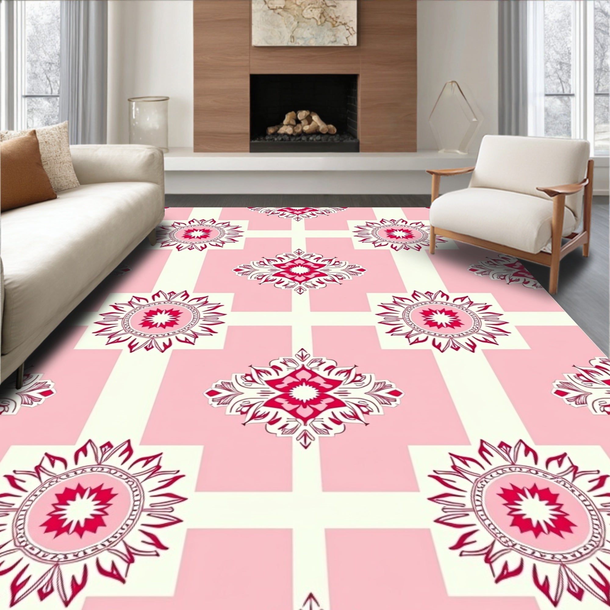 Interlocking Medallion Contemporary Mid with Ornate Motifs(Pink)
