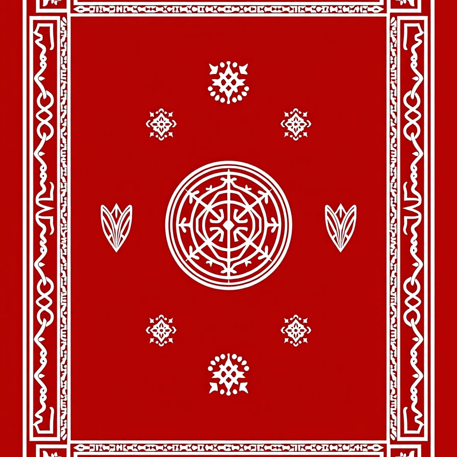 Intricate Abstract Floral Area with Geometric Patchwork Design(Red)