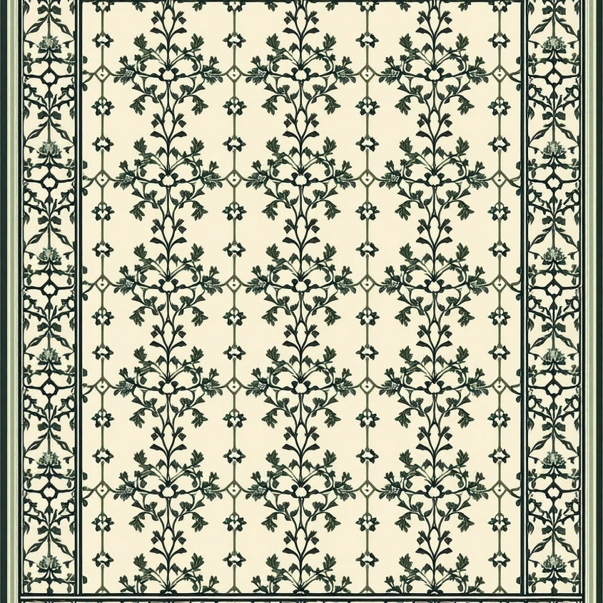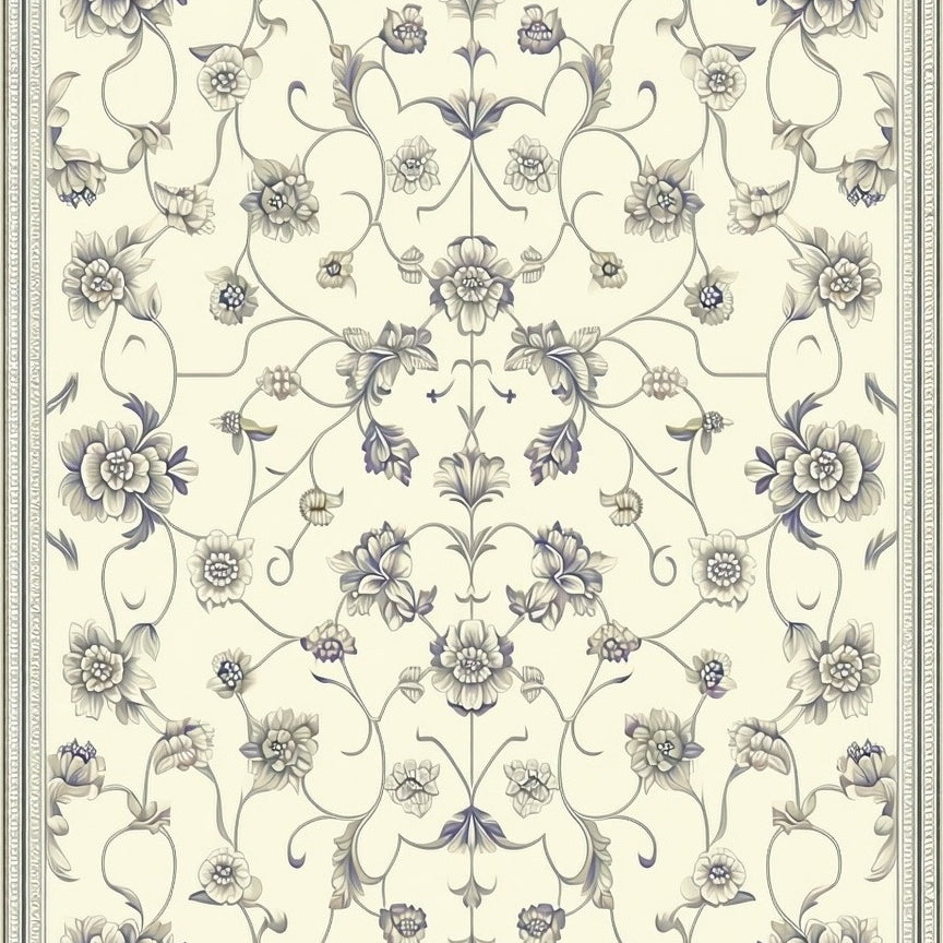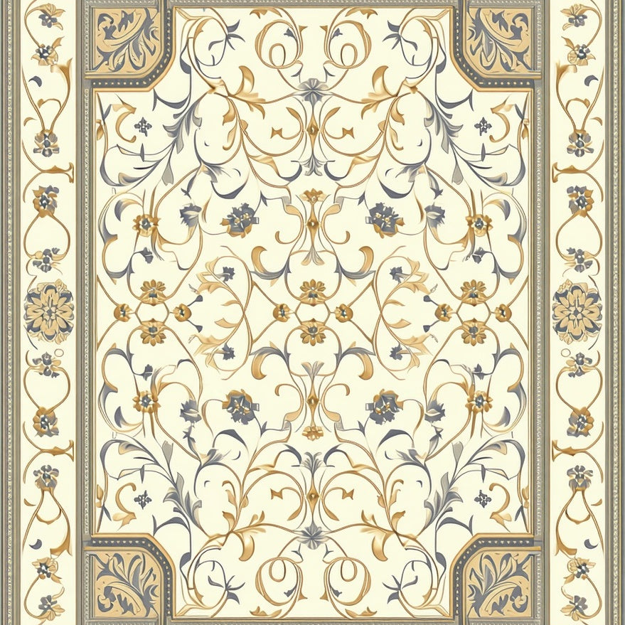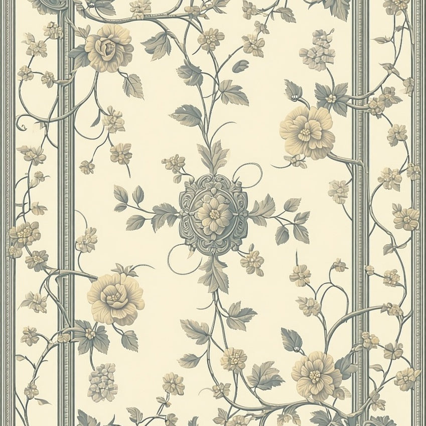 with Ornate Scrollwork and Vintage Botanical Motifs(Beige)