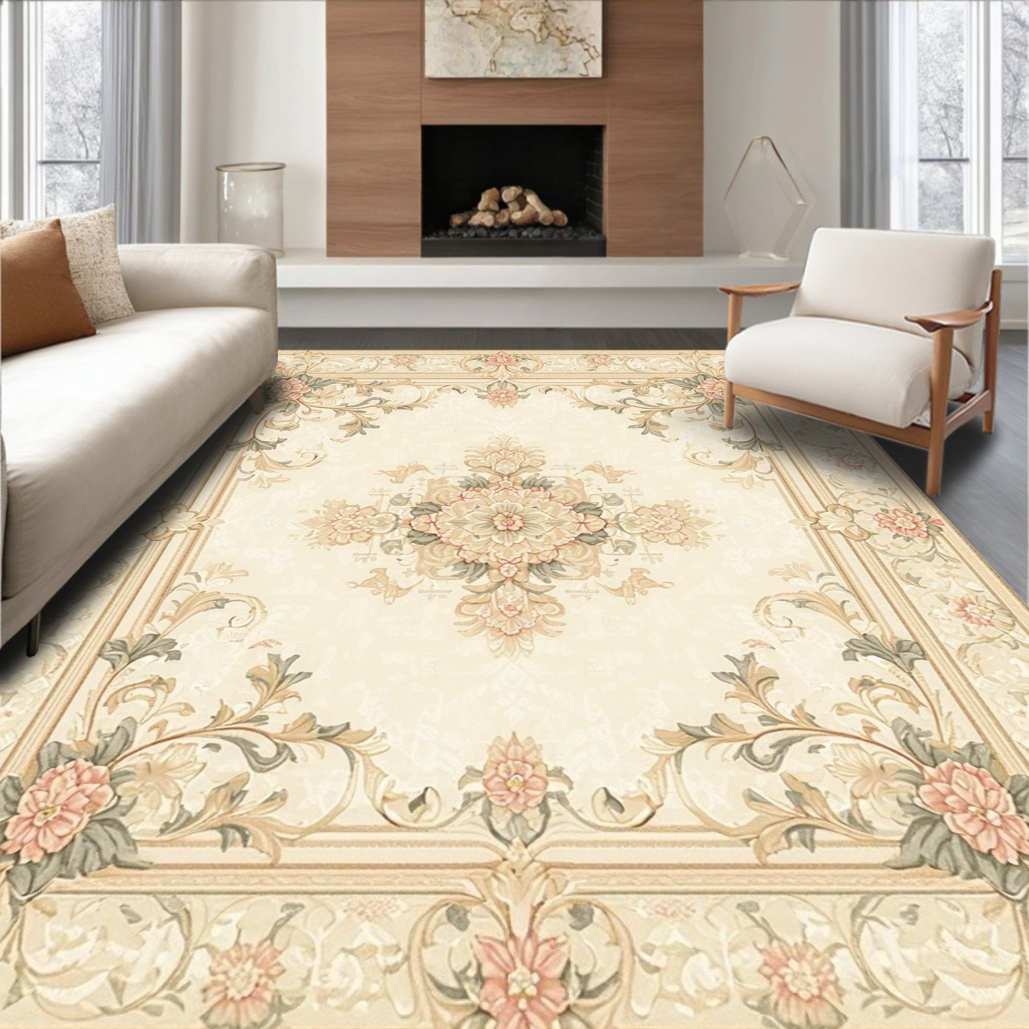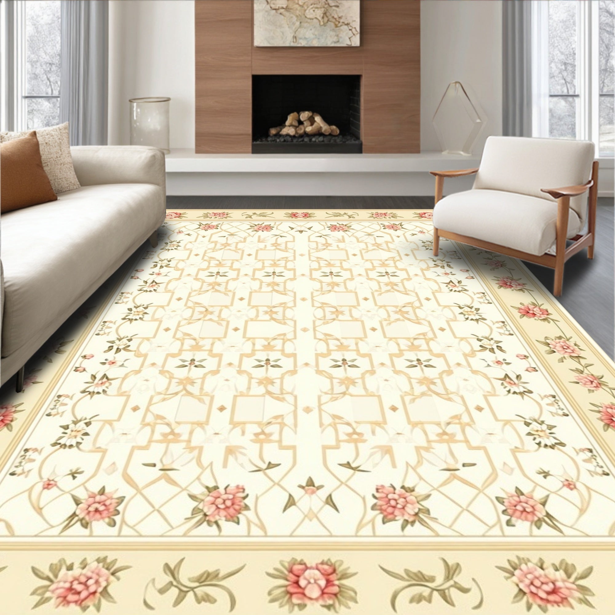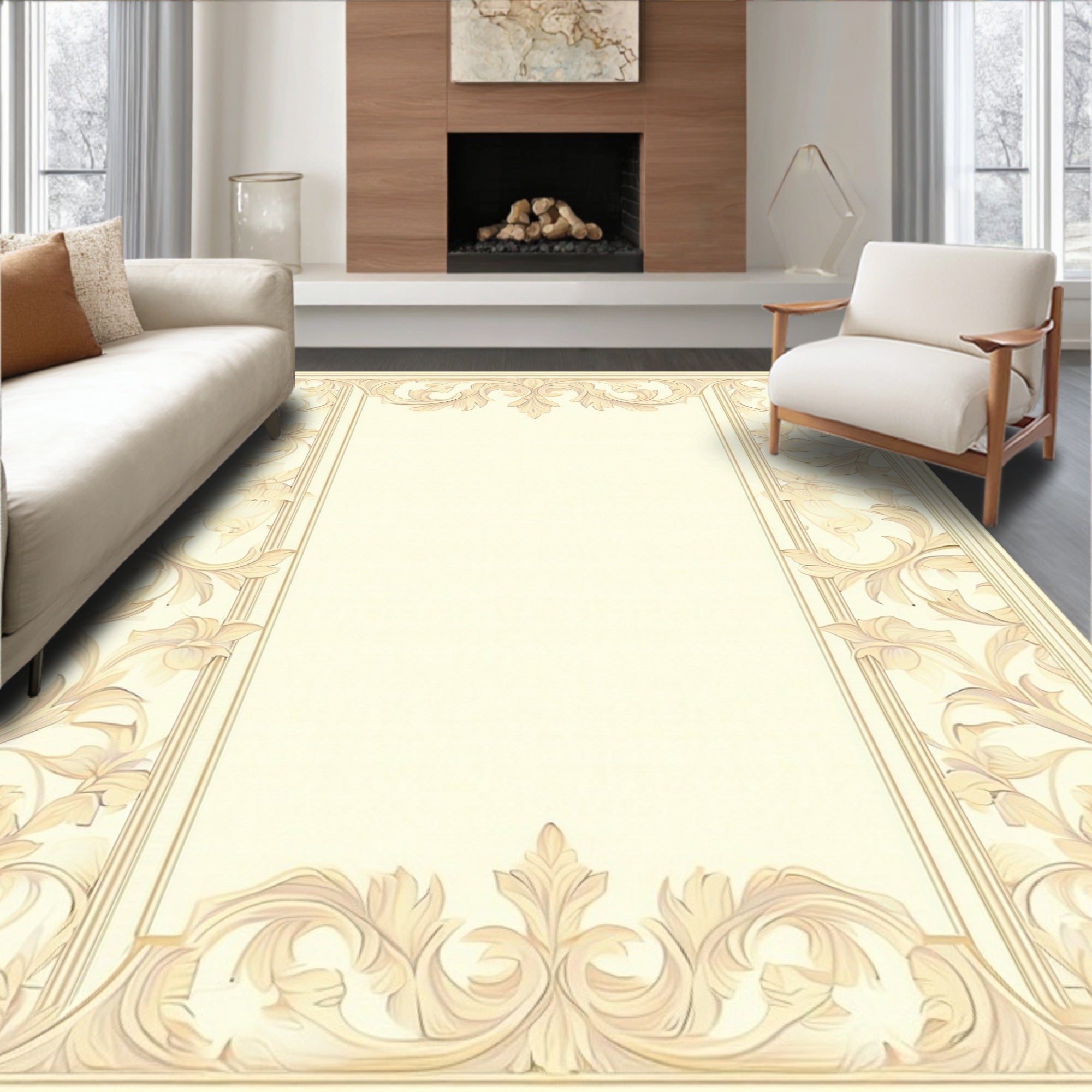 with Ornate Scrollwork and Vintage Botanical Motifs(Beige)