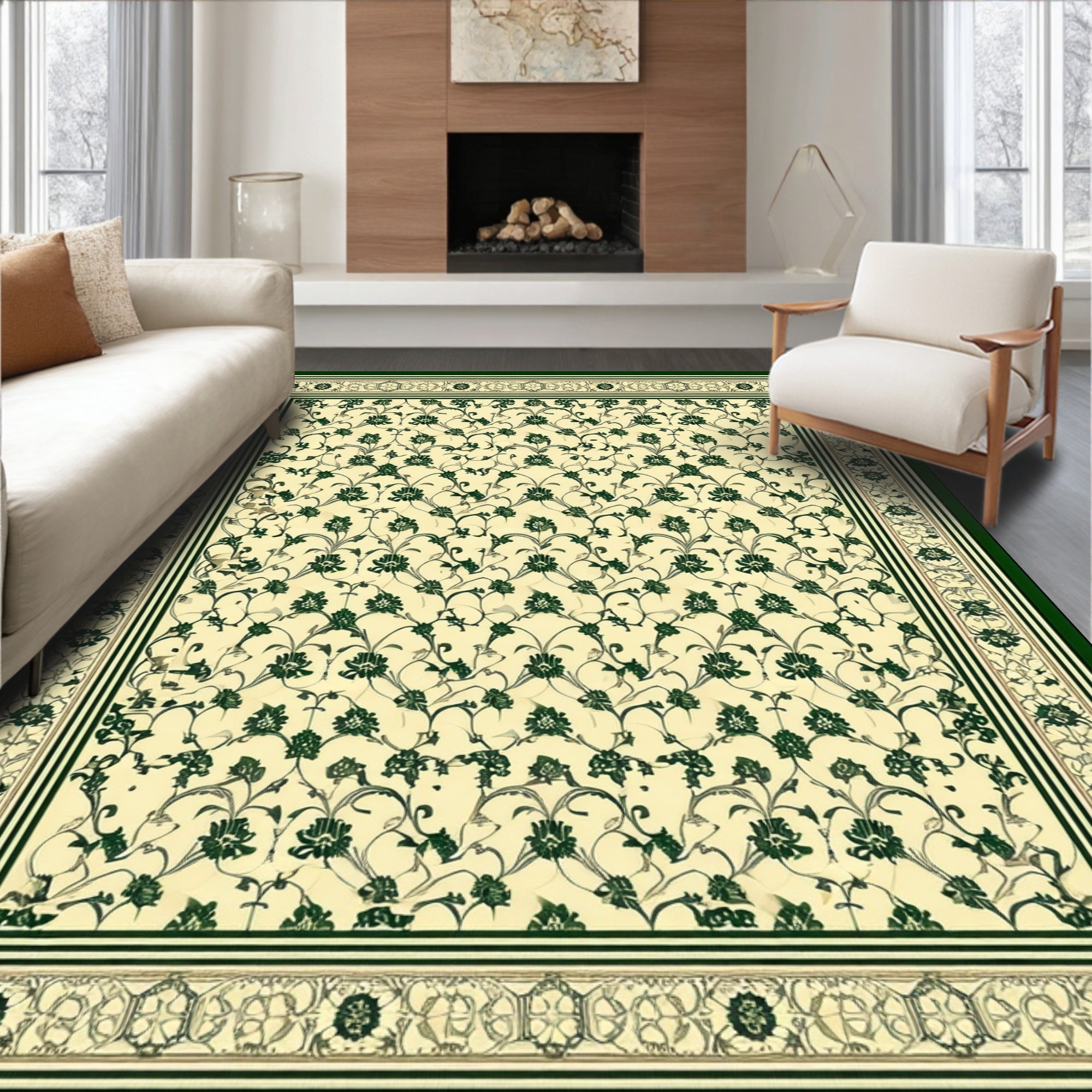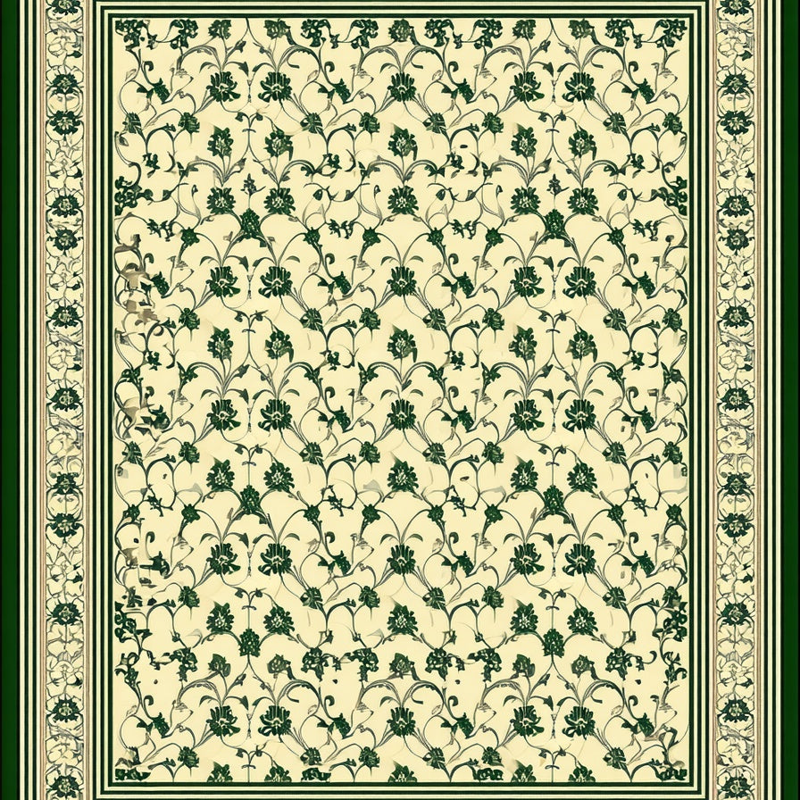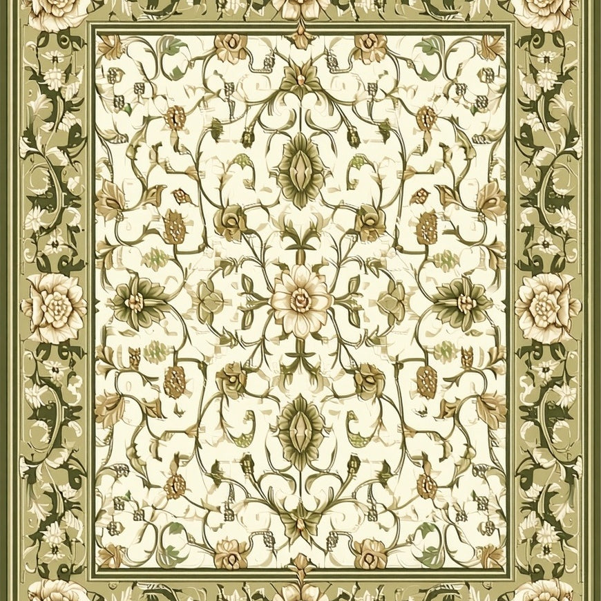 Sophisticated Olive with Detailed Scrollwork and Floral Motifs(Beige)