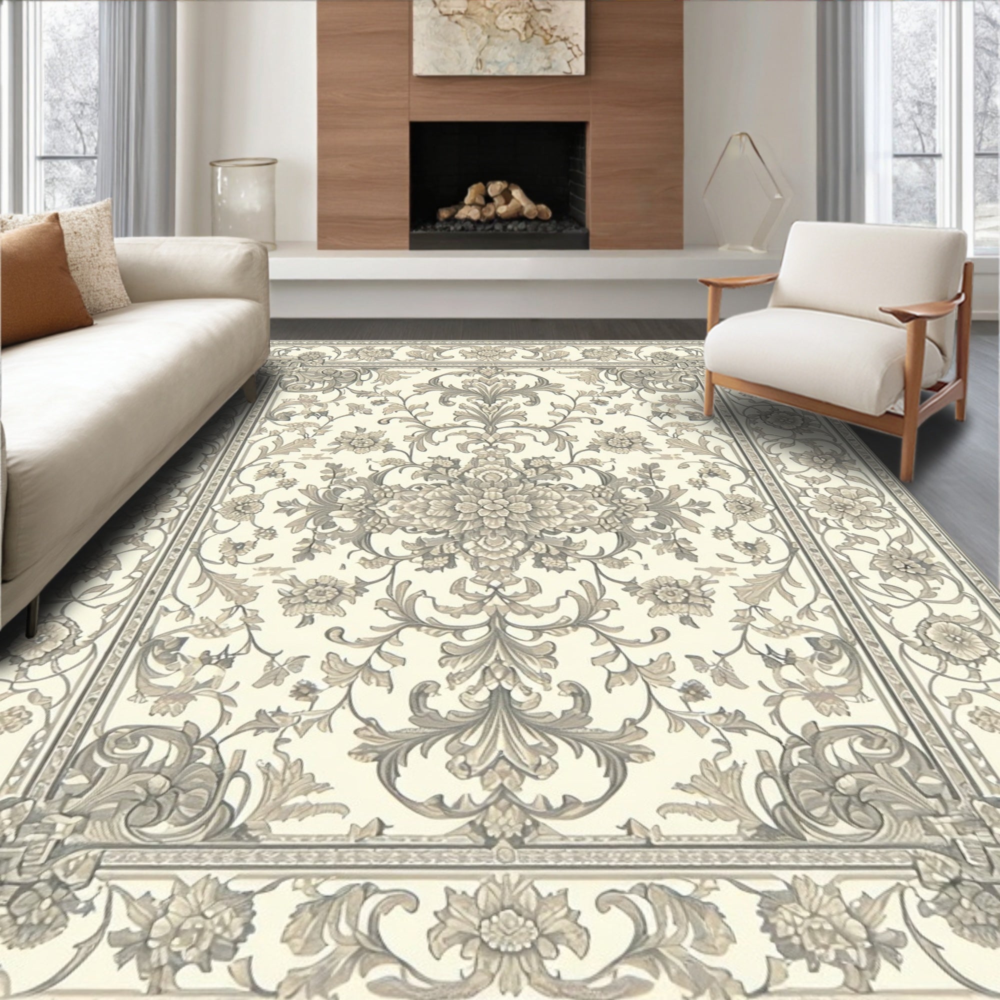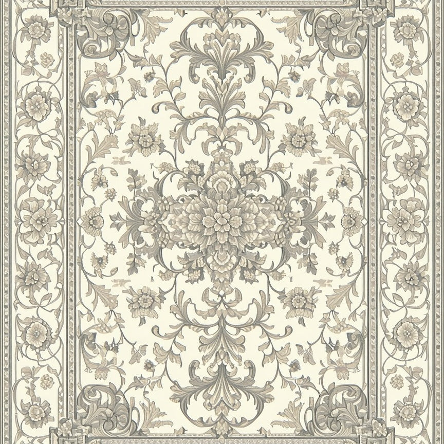 Elegant Artisan with Traditional Beige Scrollwork and Grey Accents(Beige)