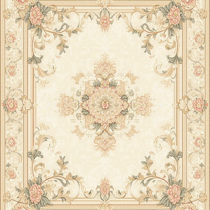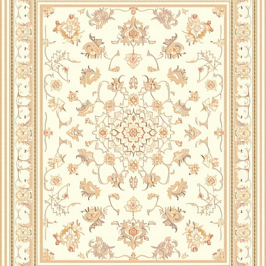 Classic Medallion with Ornate Ivory Beige Scrollwork and Vintage Motifs(Beige)