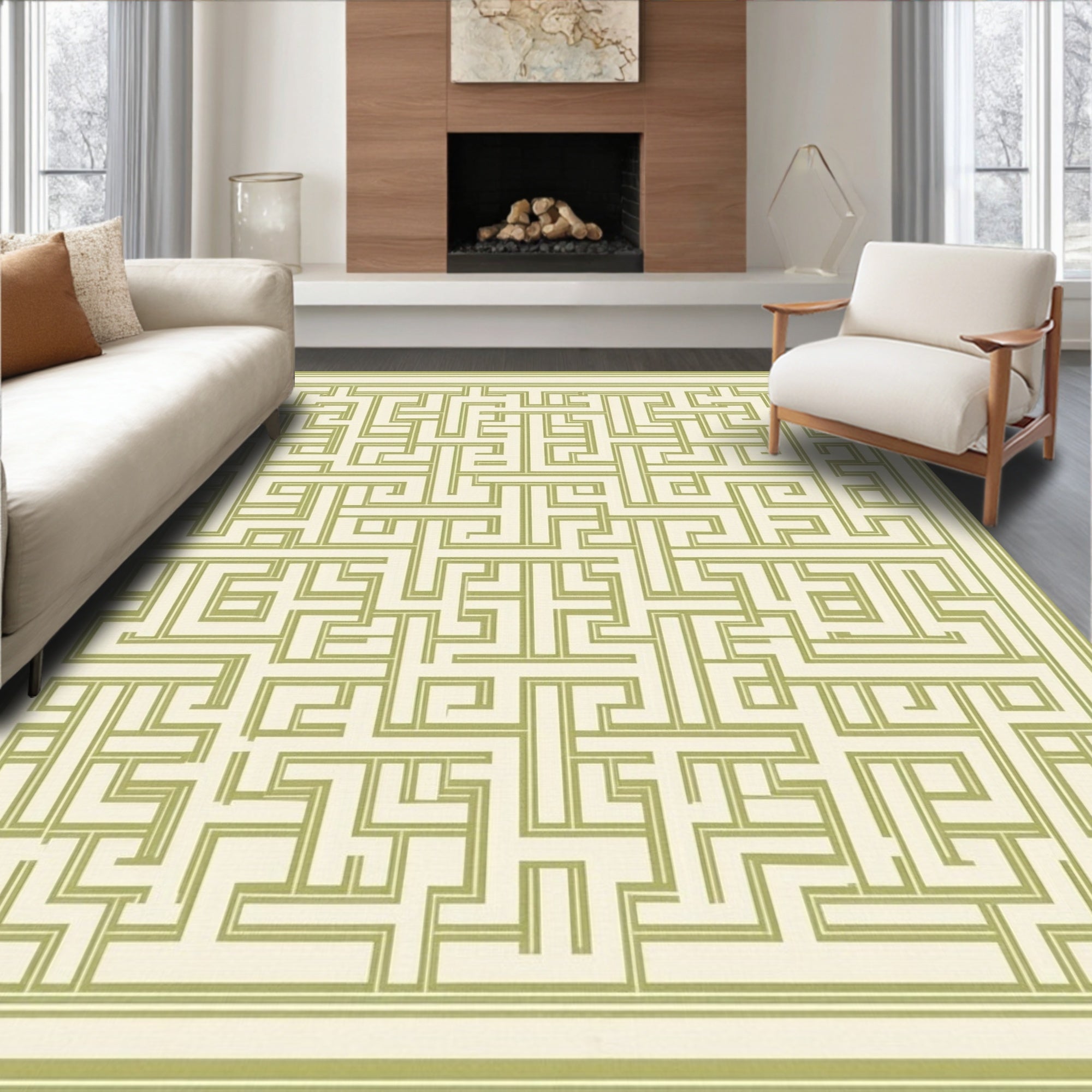 Courtyard Collection Serene Beige Sage Green Lattice Indoor(Beige)