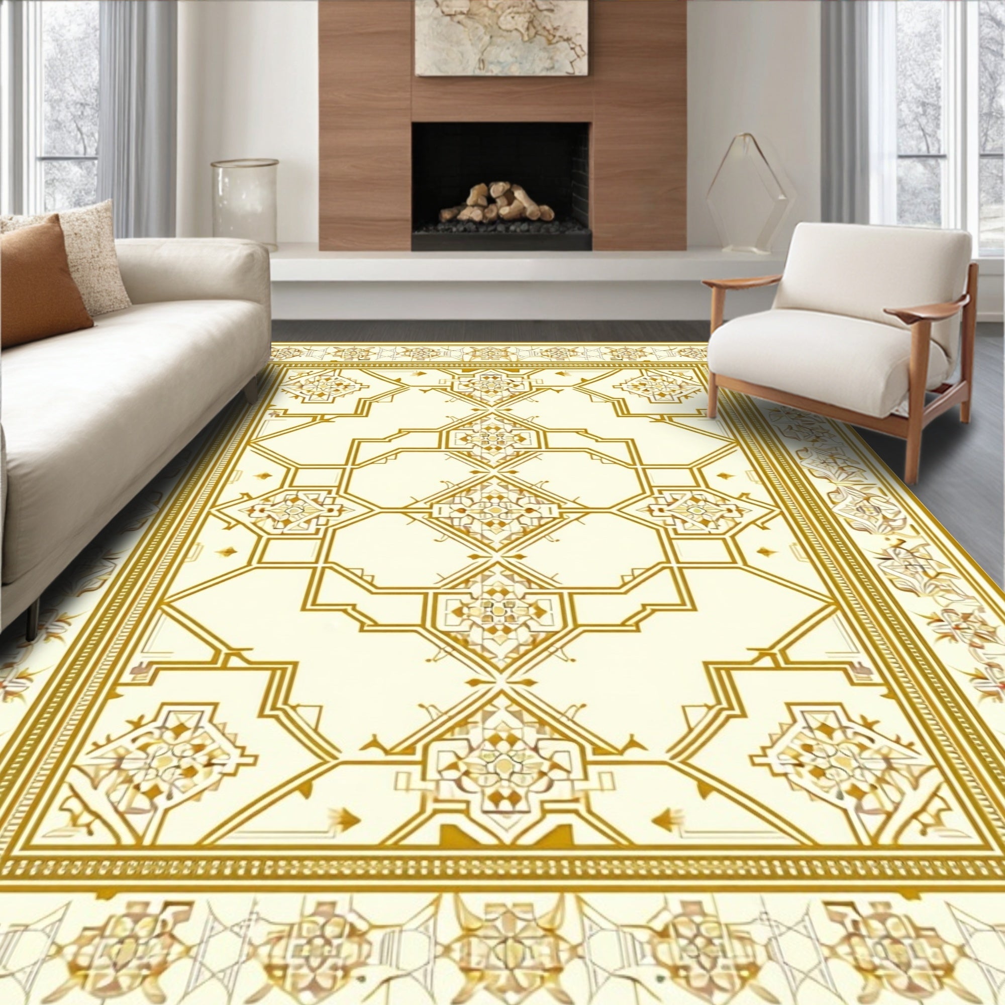Artisan Trellis with Ornate Scrollwork and Contemporary Border(Beige)
