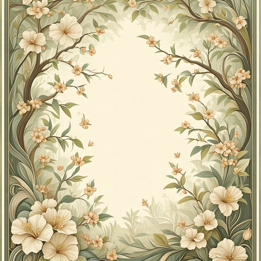 Enchanted Garden with Beige Backdrop and Green Vine Swirls(Beige)
