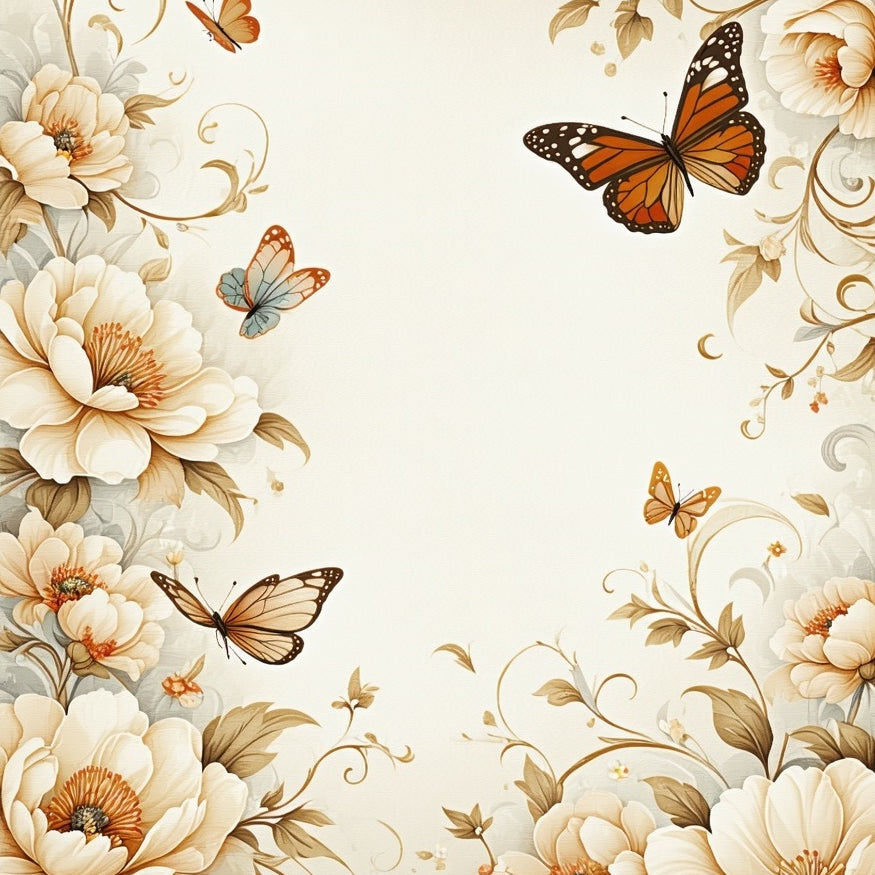 Chic Beige Botanical Whisper Delicate Floral Bloom(Beige)