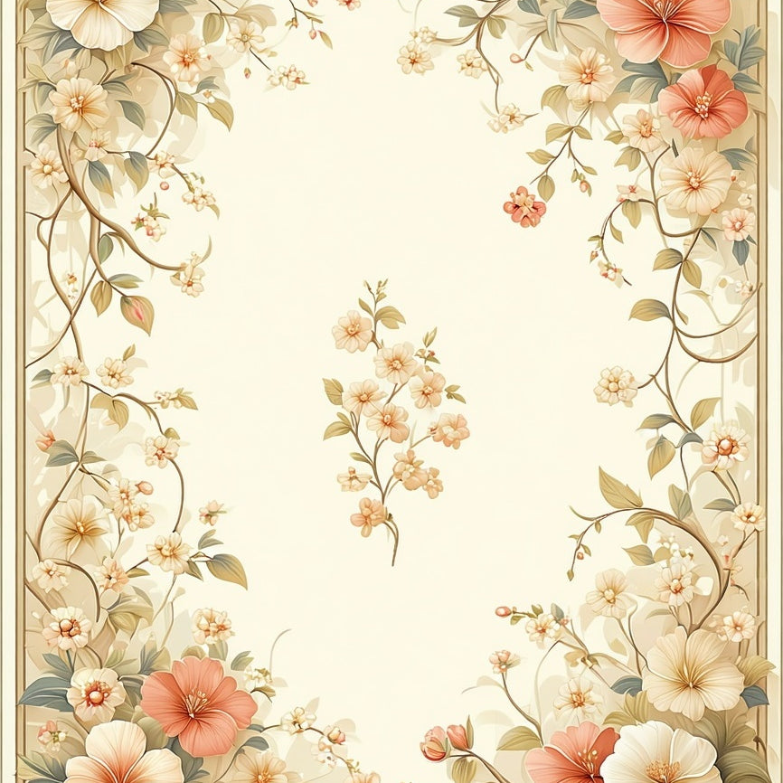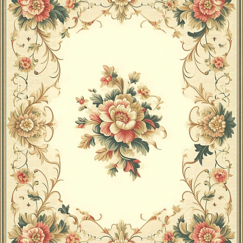 Beige Floral Bloom Elegant Motif Floor(Beige)