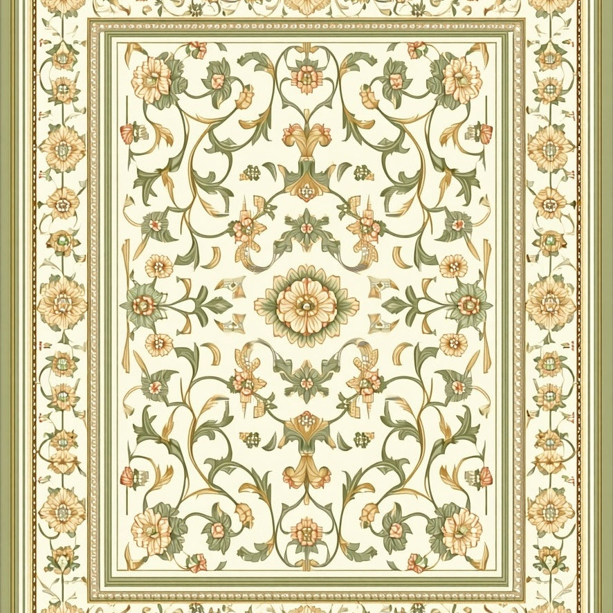 Heirloom Quality Sage Beige Traditional Floral Motif(Beige)