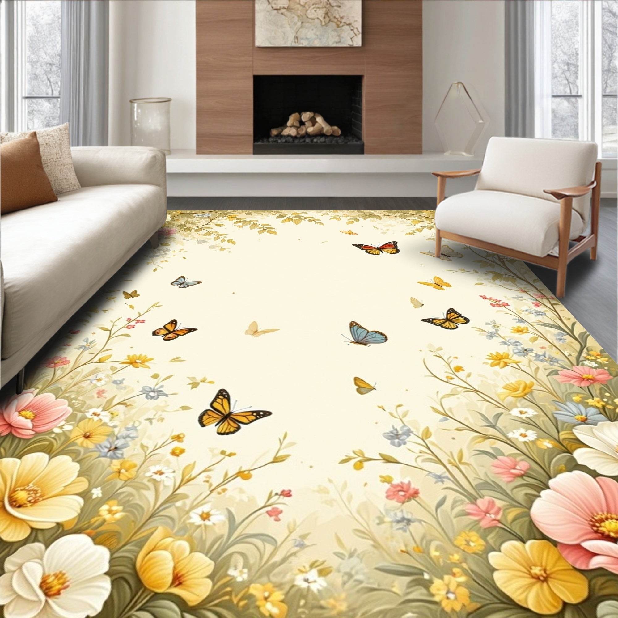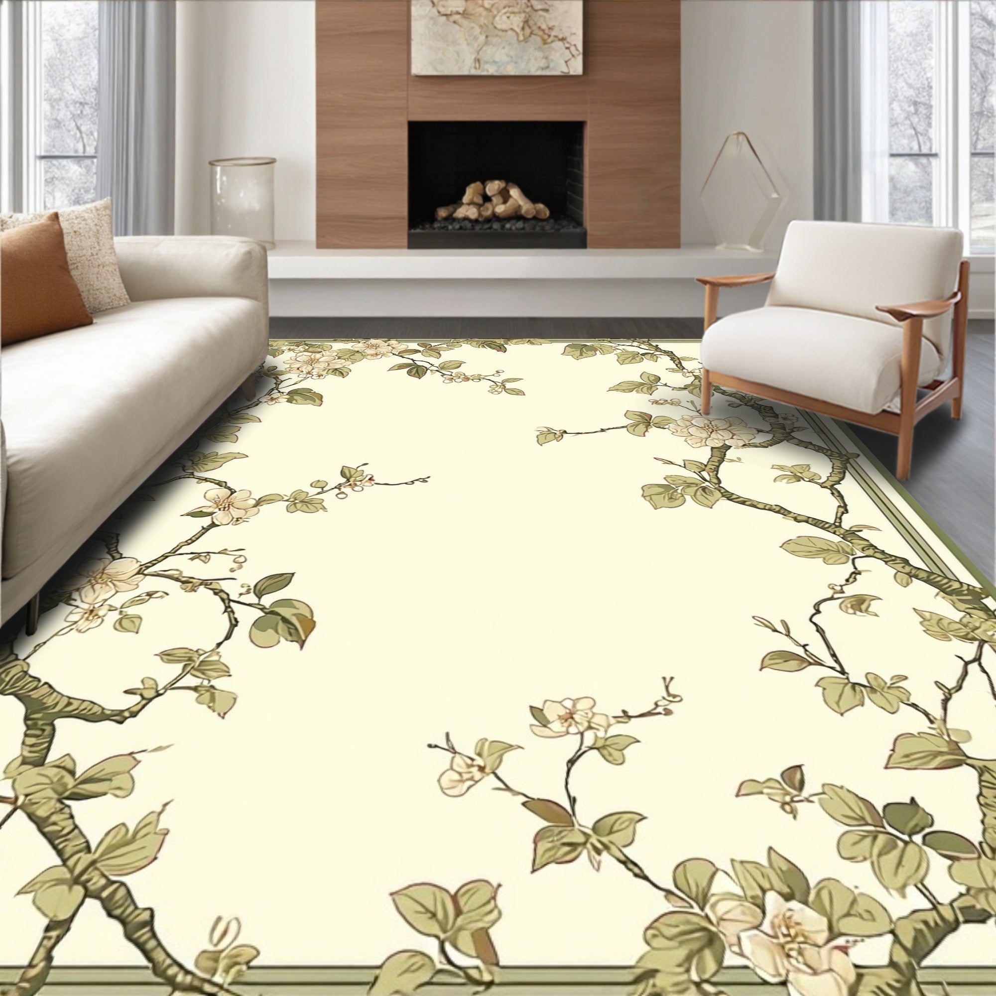 Chic Beige Garden Bloom Floor(Beige)
