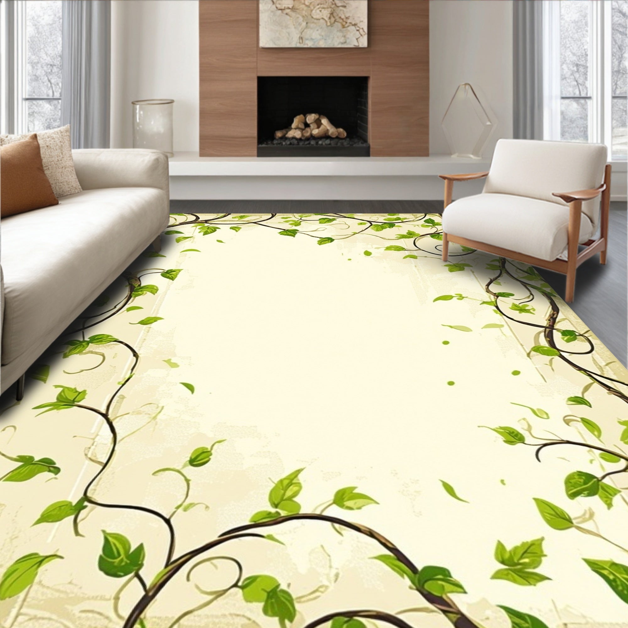 Whimsical Playhouse Inspired with Beige Base and Leafy Green Motifs(Beige)