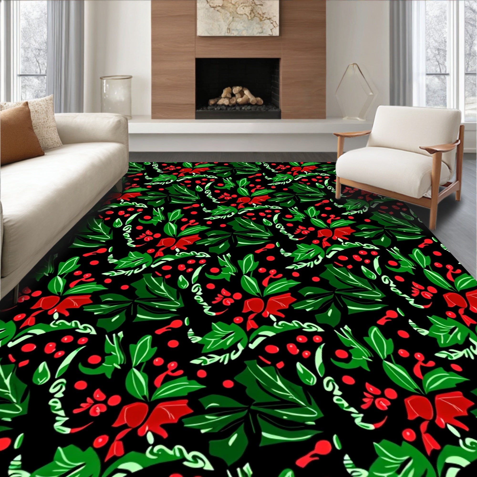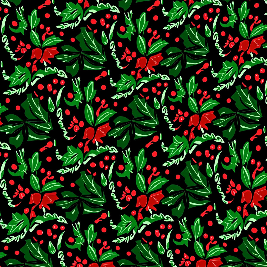 Scandi Checkerboard with Festive Holly Leaf Details(Black)