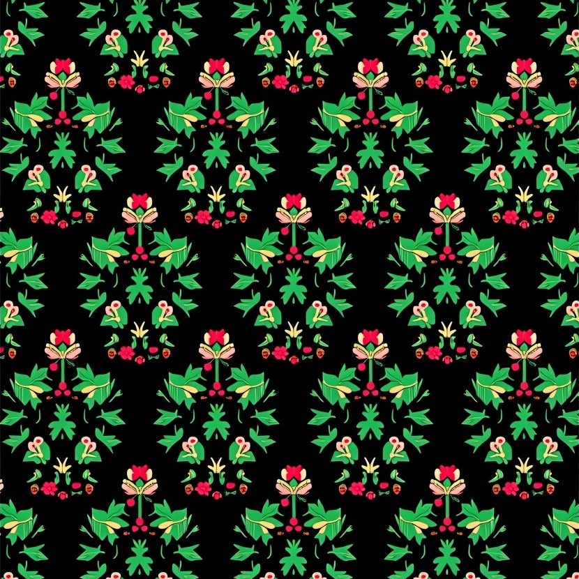 Heritage Gingham Check with Stylized Pine and Berry Border(Black)