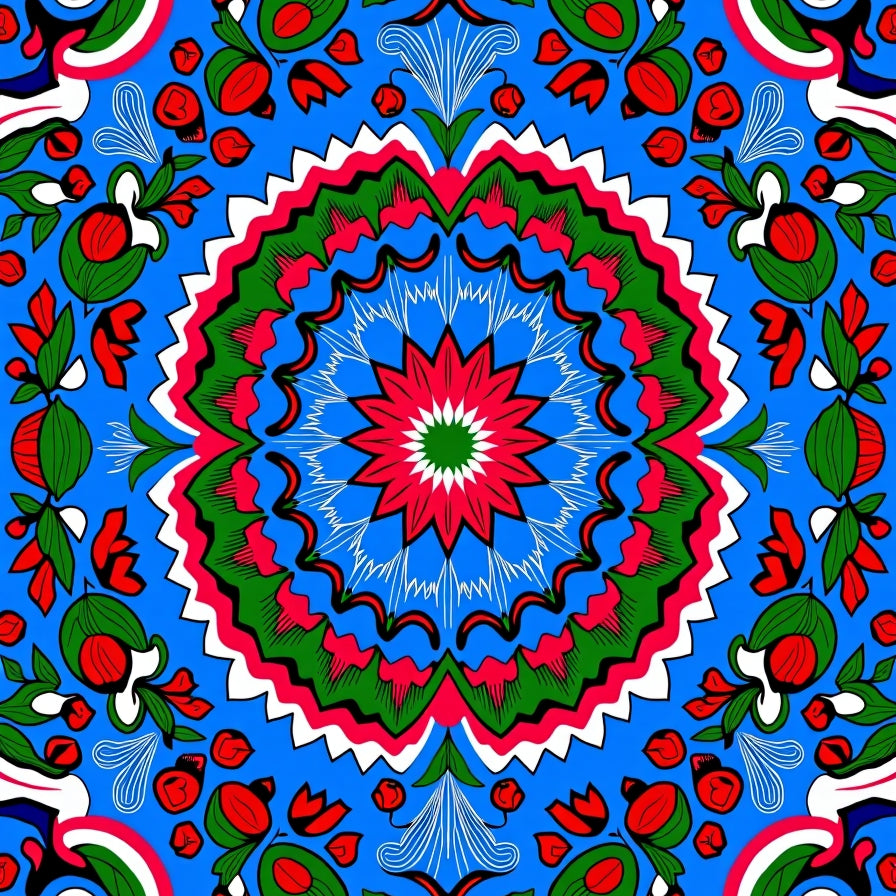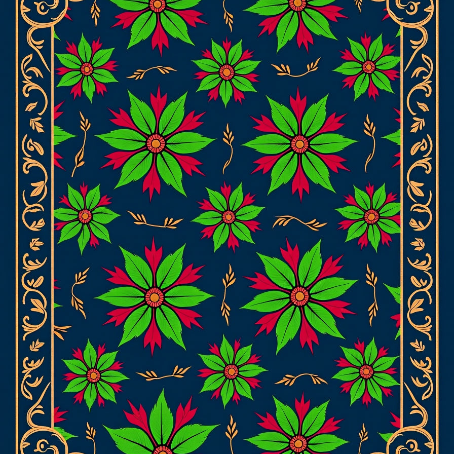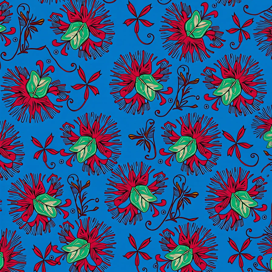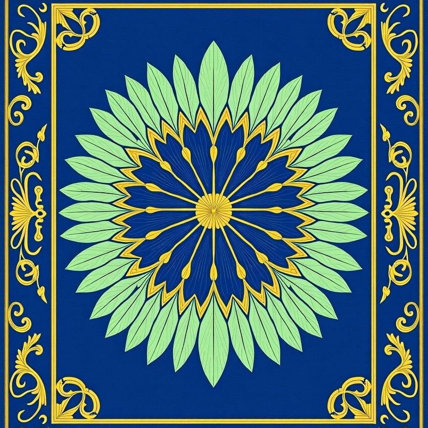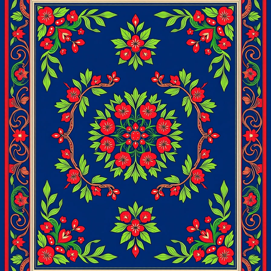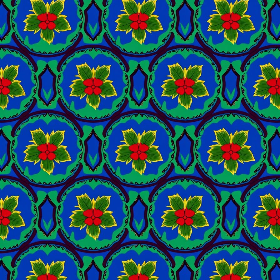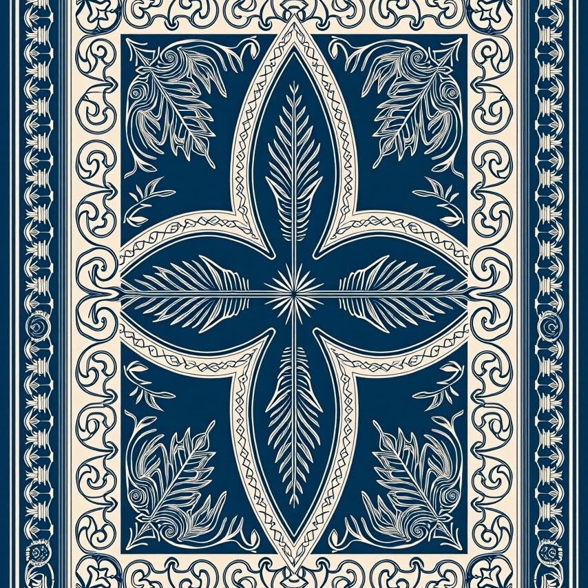 Botanical Medallion Interlocking Leaf with Festive Scroll Motifs(Blue)