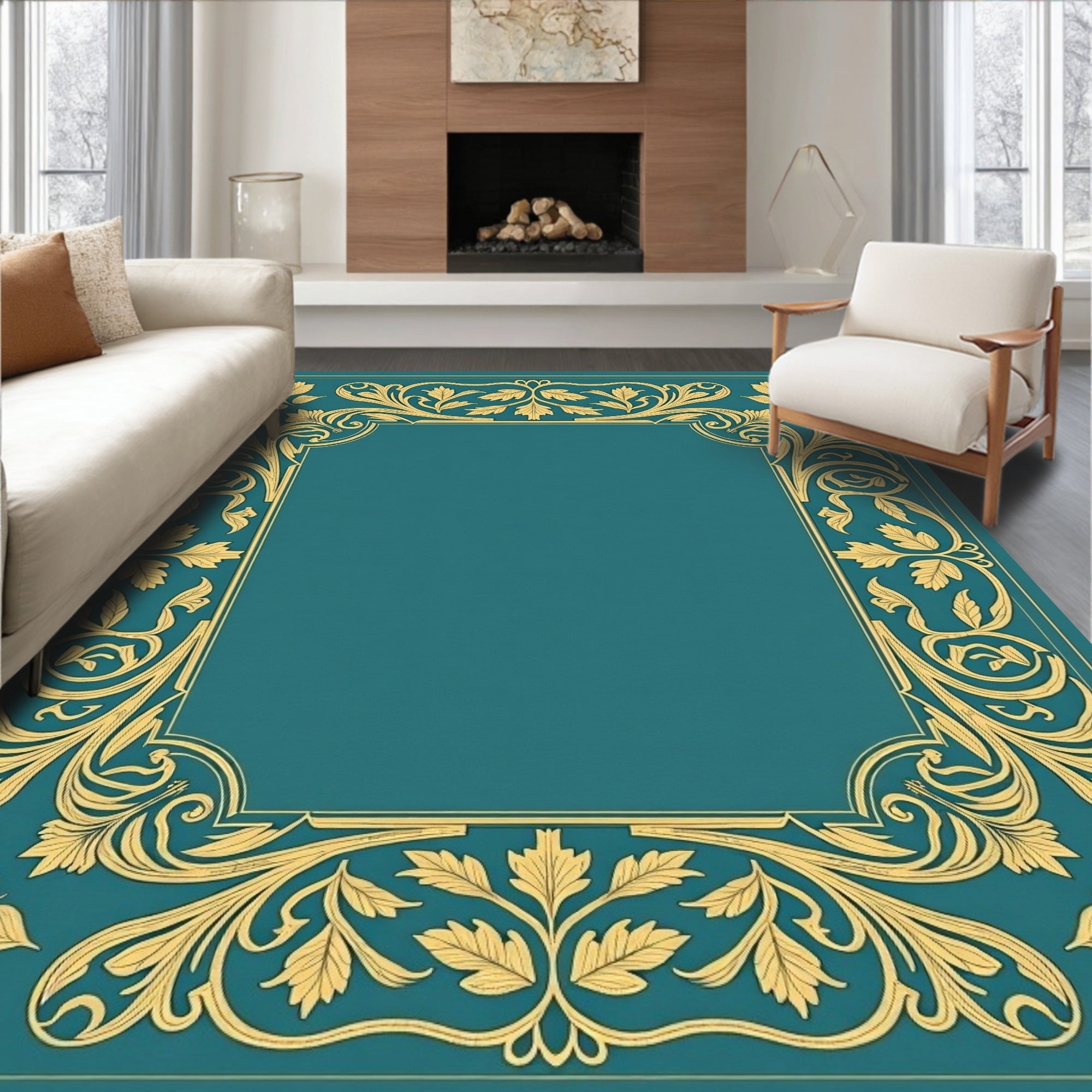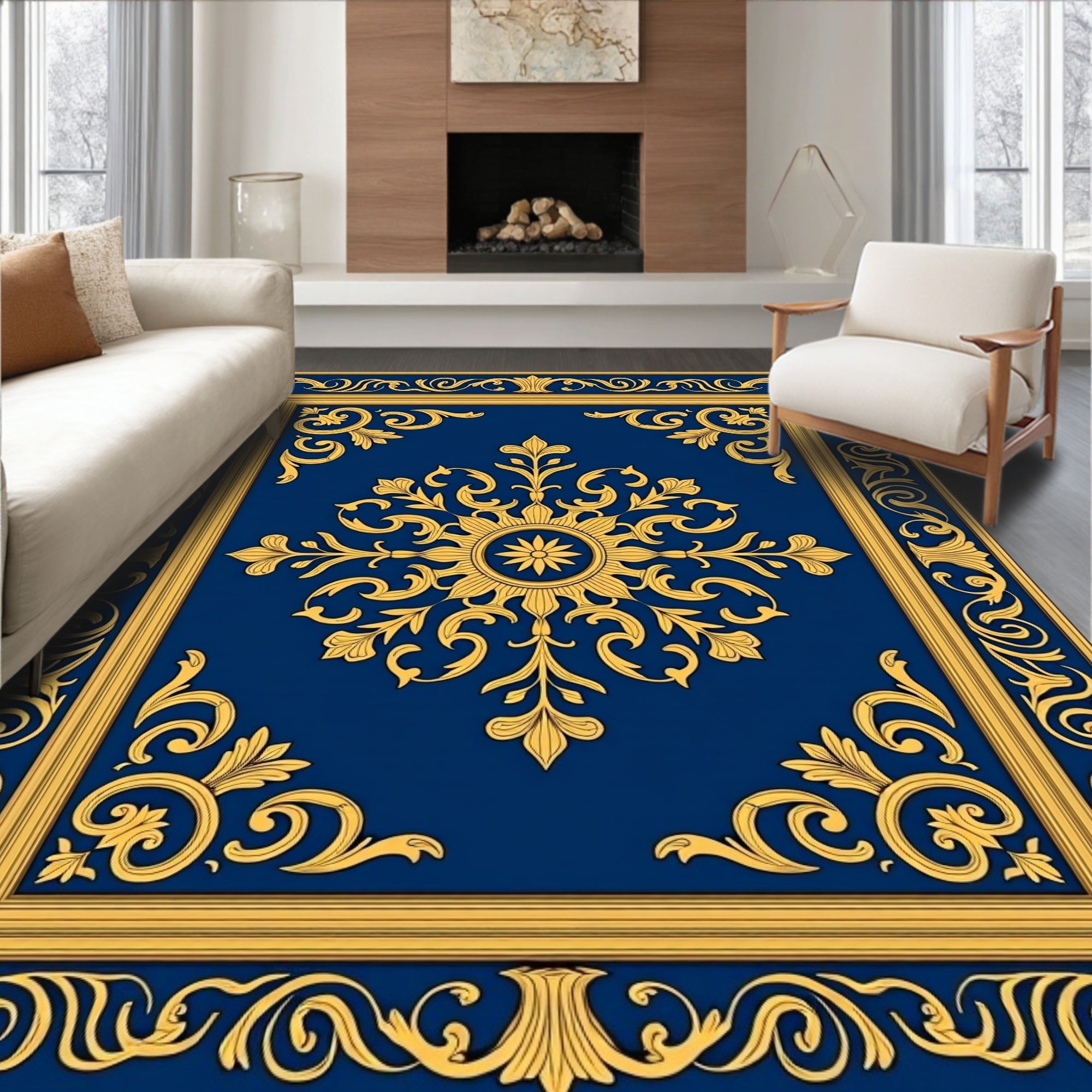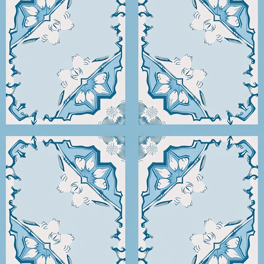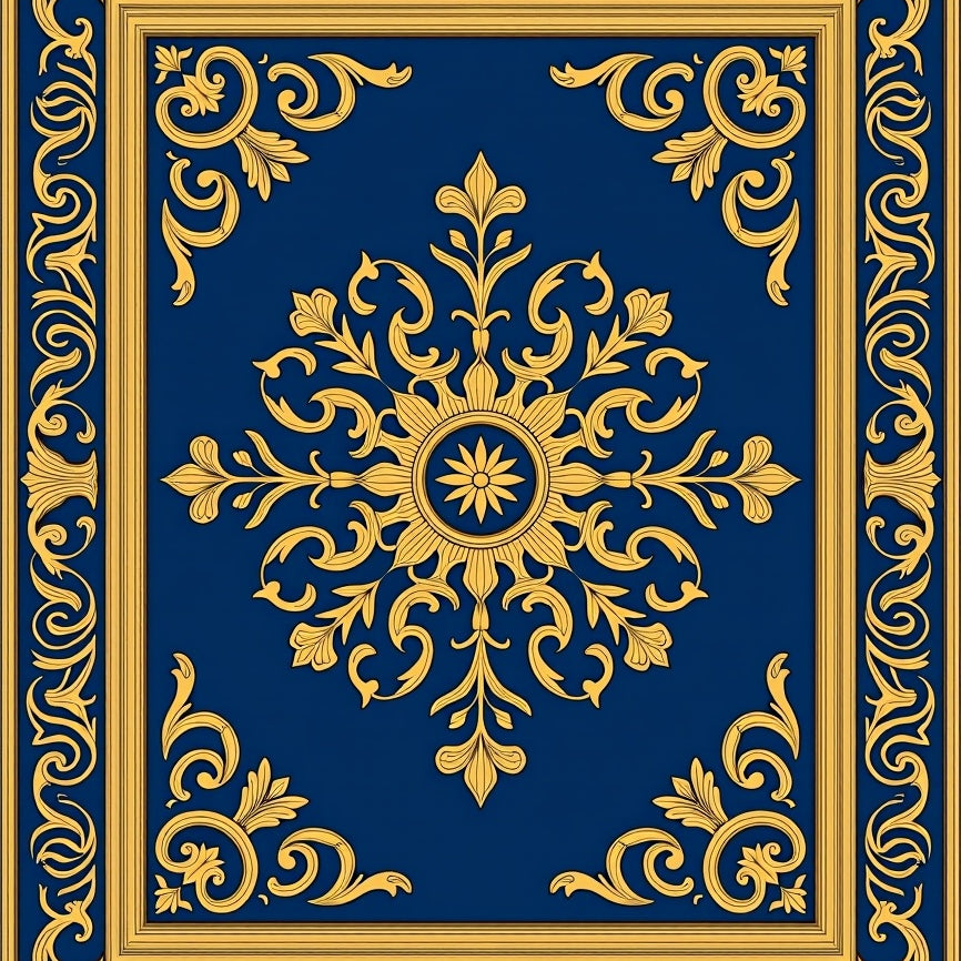 Traditional Damask Medallion Ornate Surface Treatment(Blue)