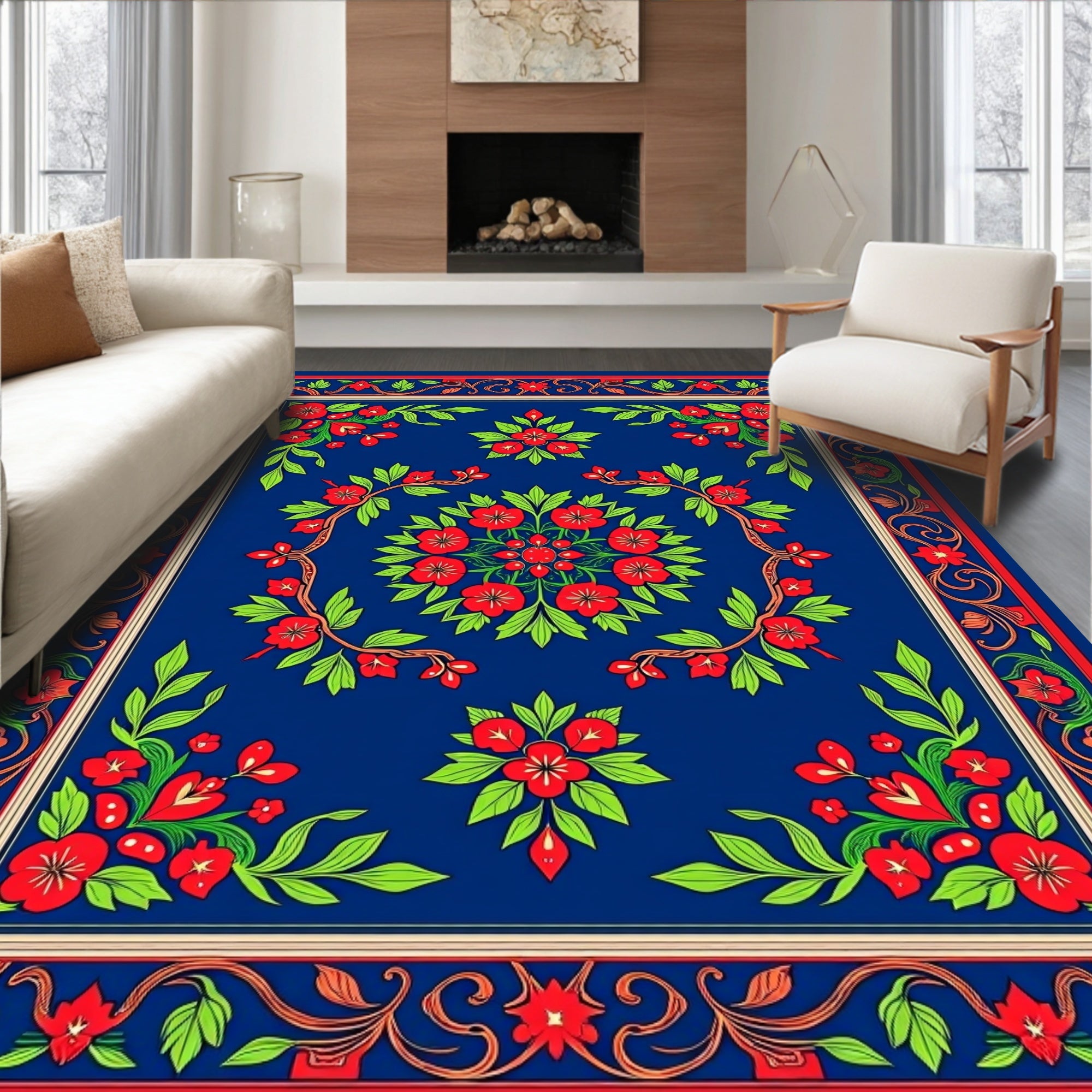Ornate Holly Berry and Leaf Design Hallway(Blue)