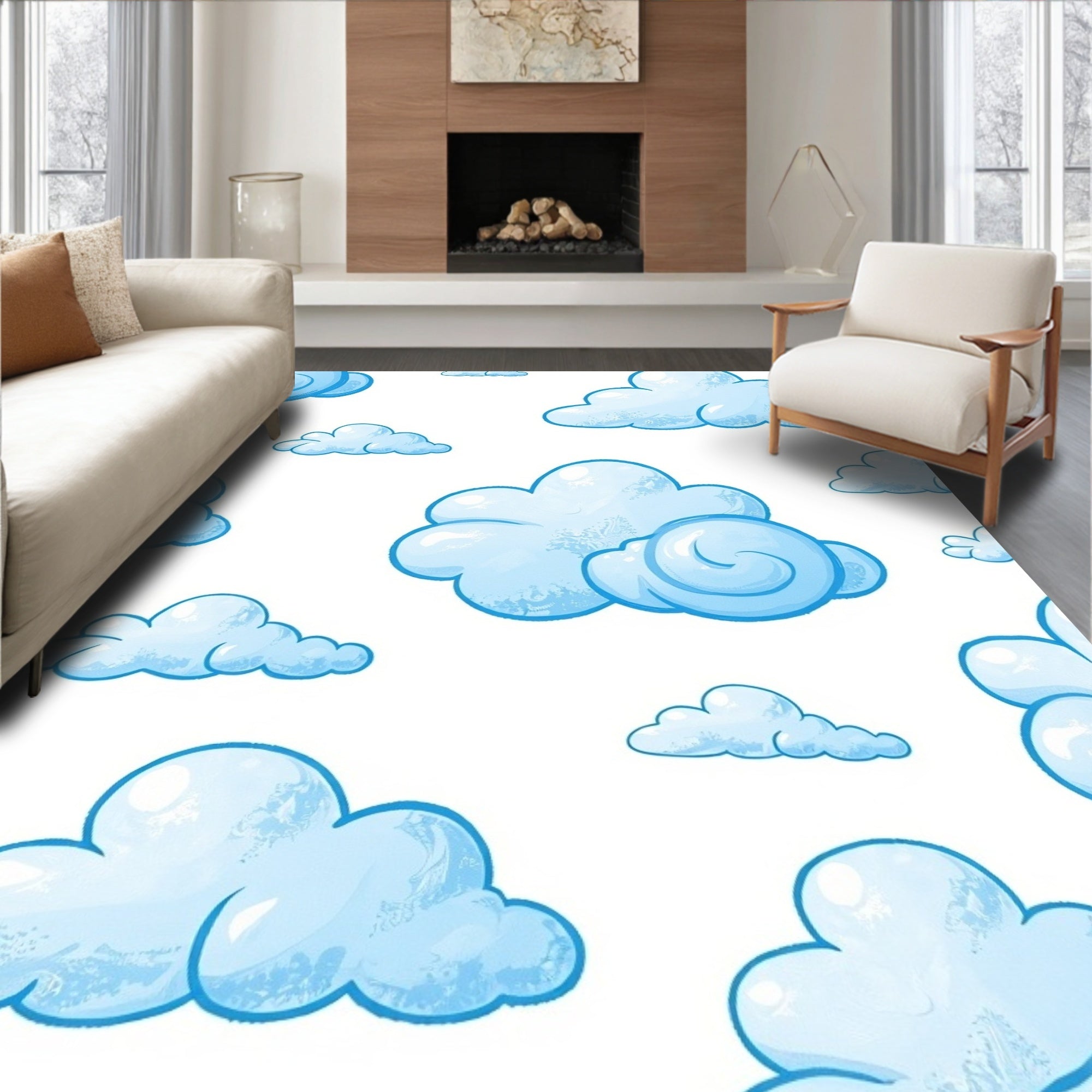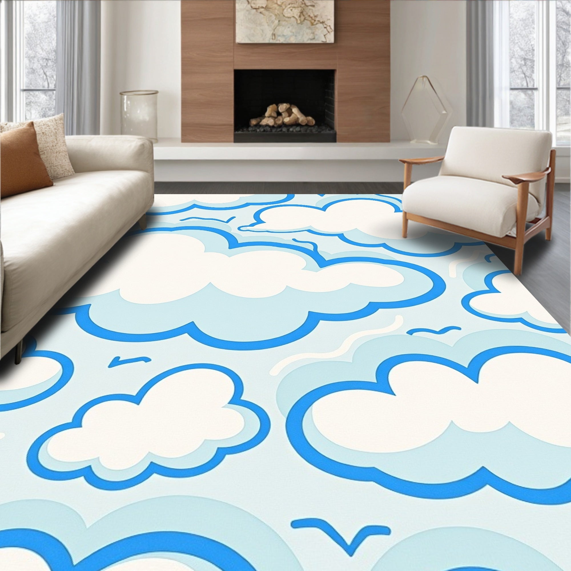 Cumulus Cloud Formation Accent with Dreamy Sky Motifs(Blue)