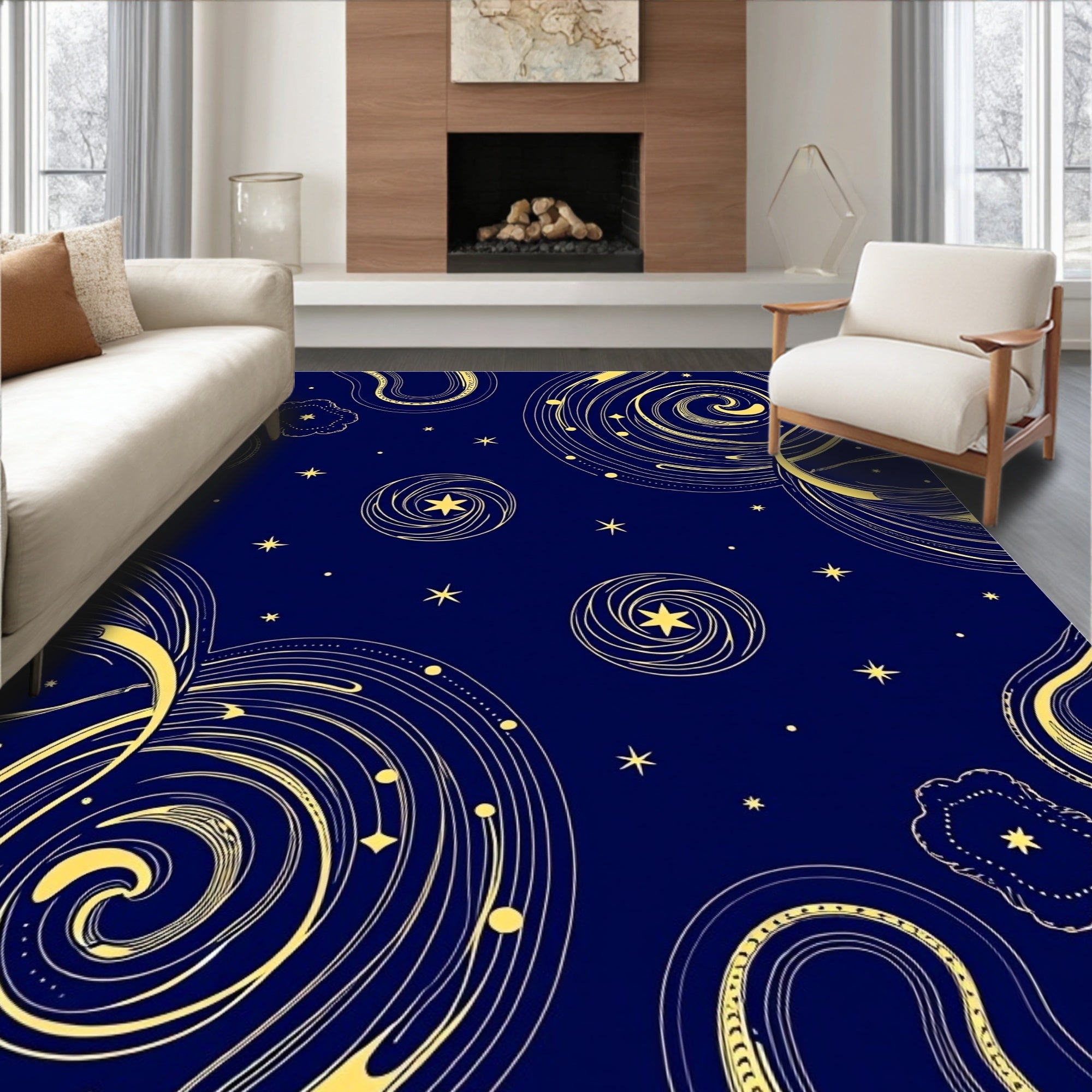 Celestial Cloudburst Abstract Motif with Gradient Swirls(Blue)
