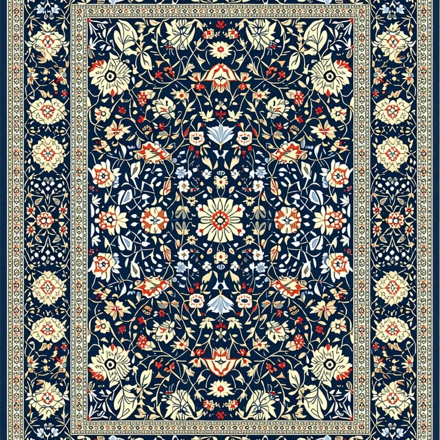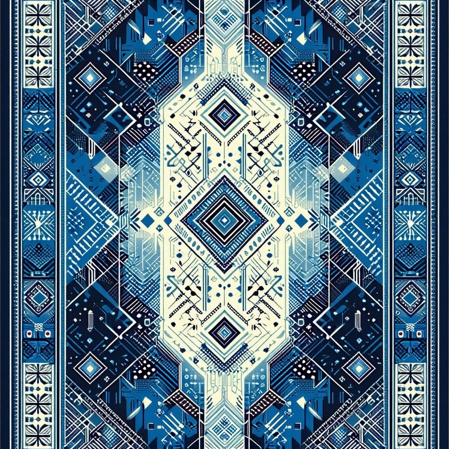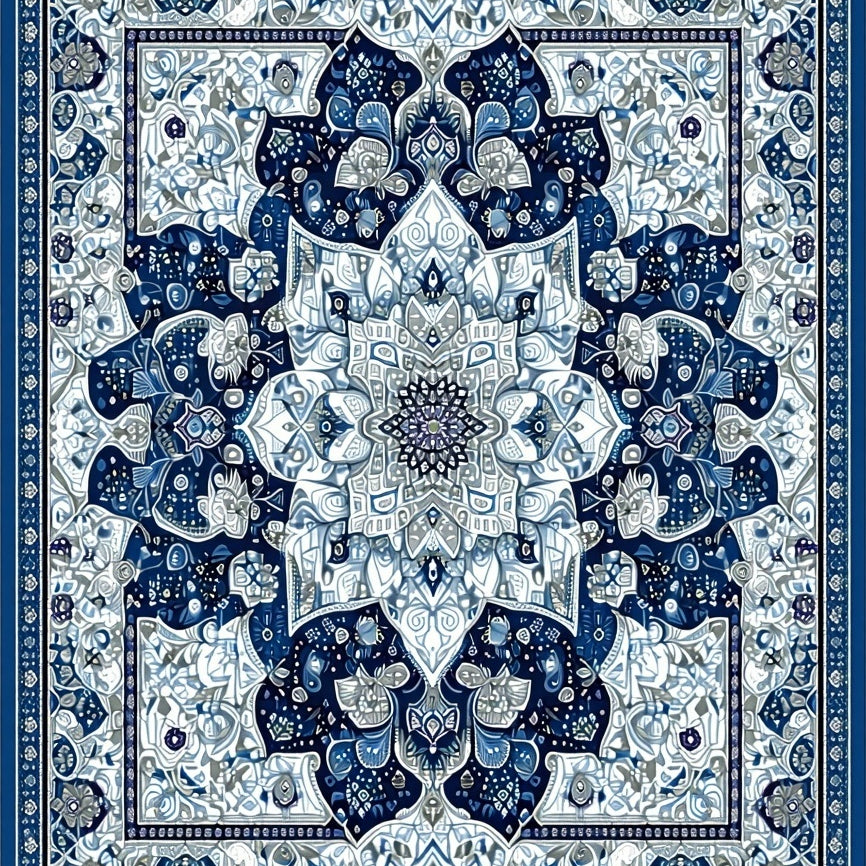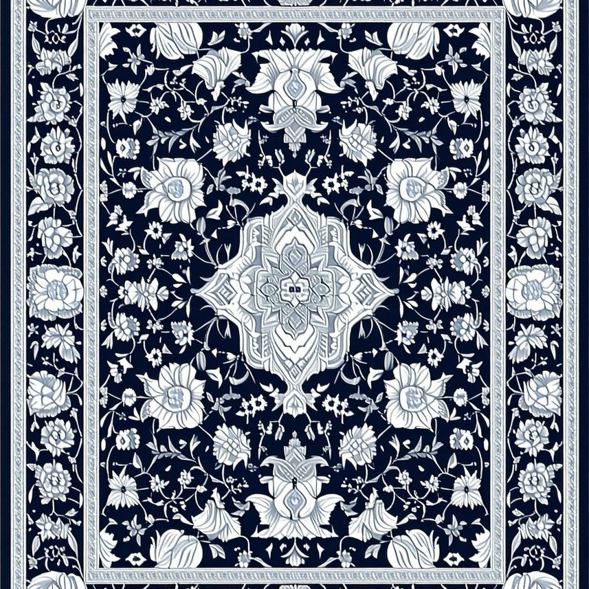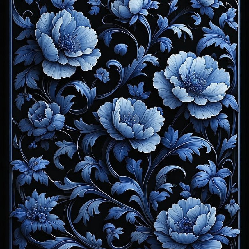 Navy and Silver Abstract Floral with Intricate(Blue)