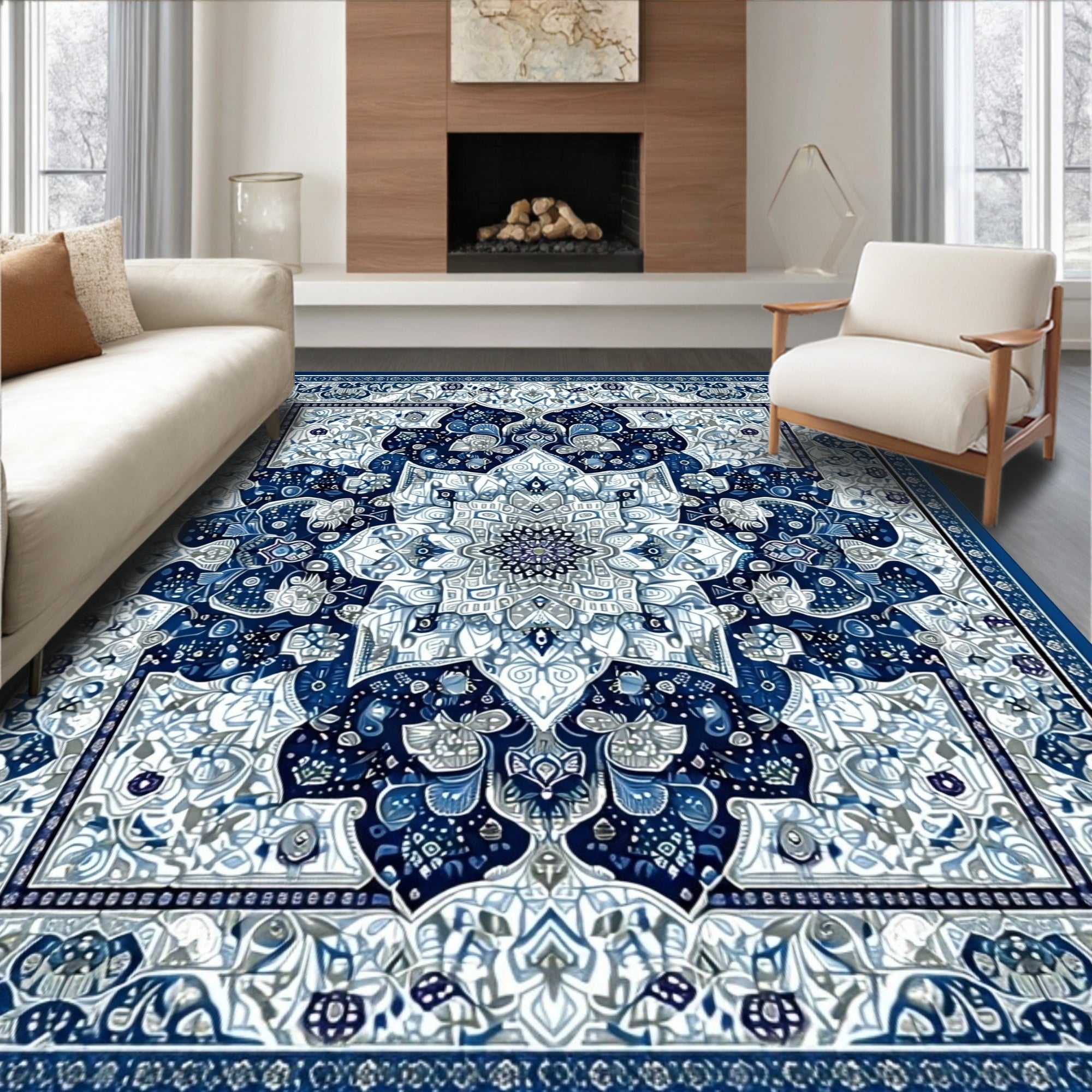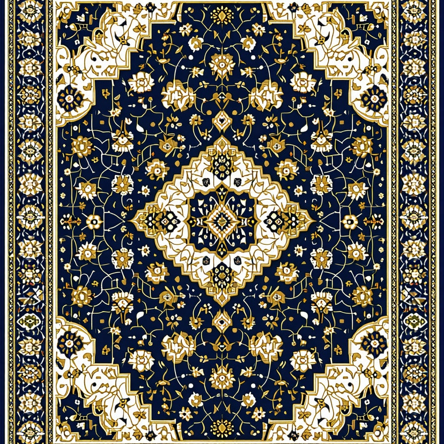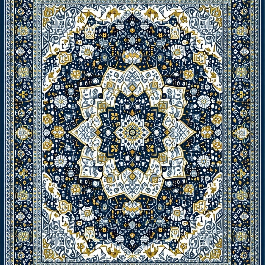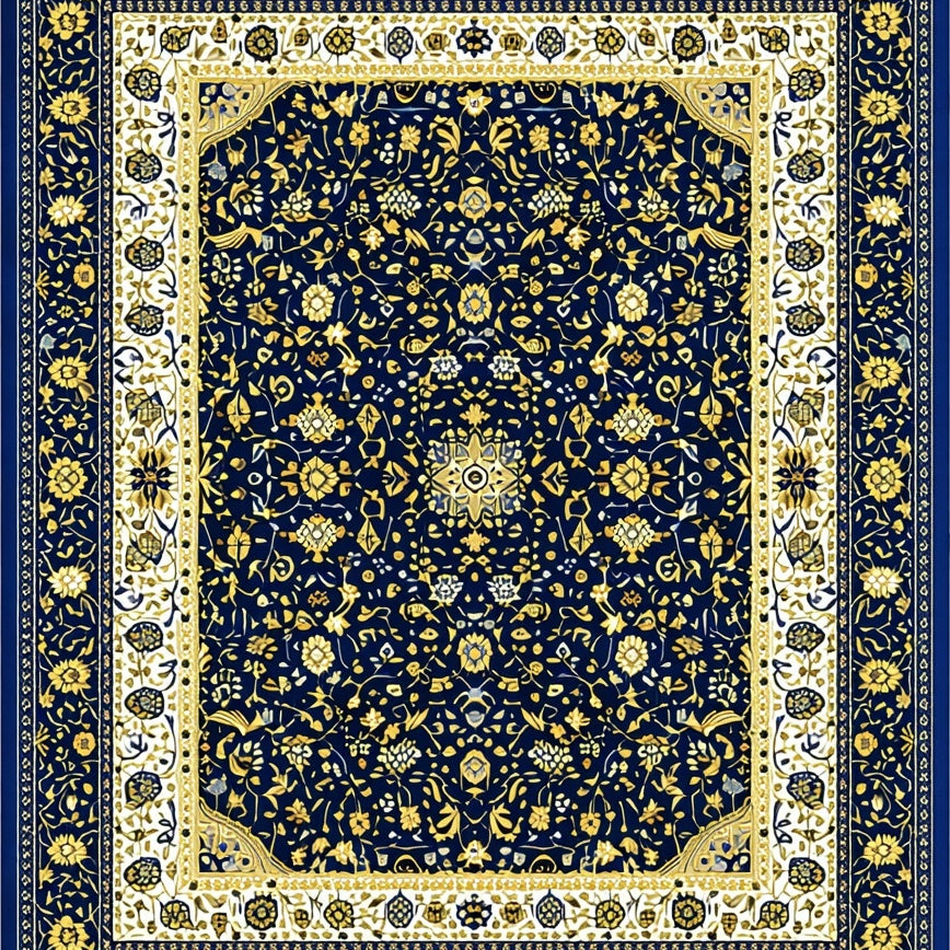 Navy and Silver Abstract Floral with Intricate(Blue)