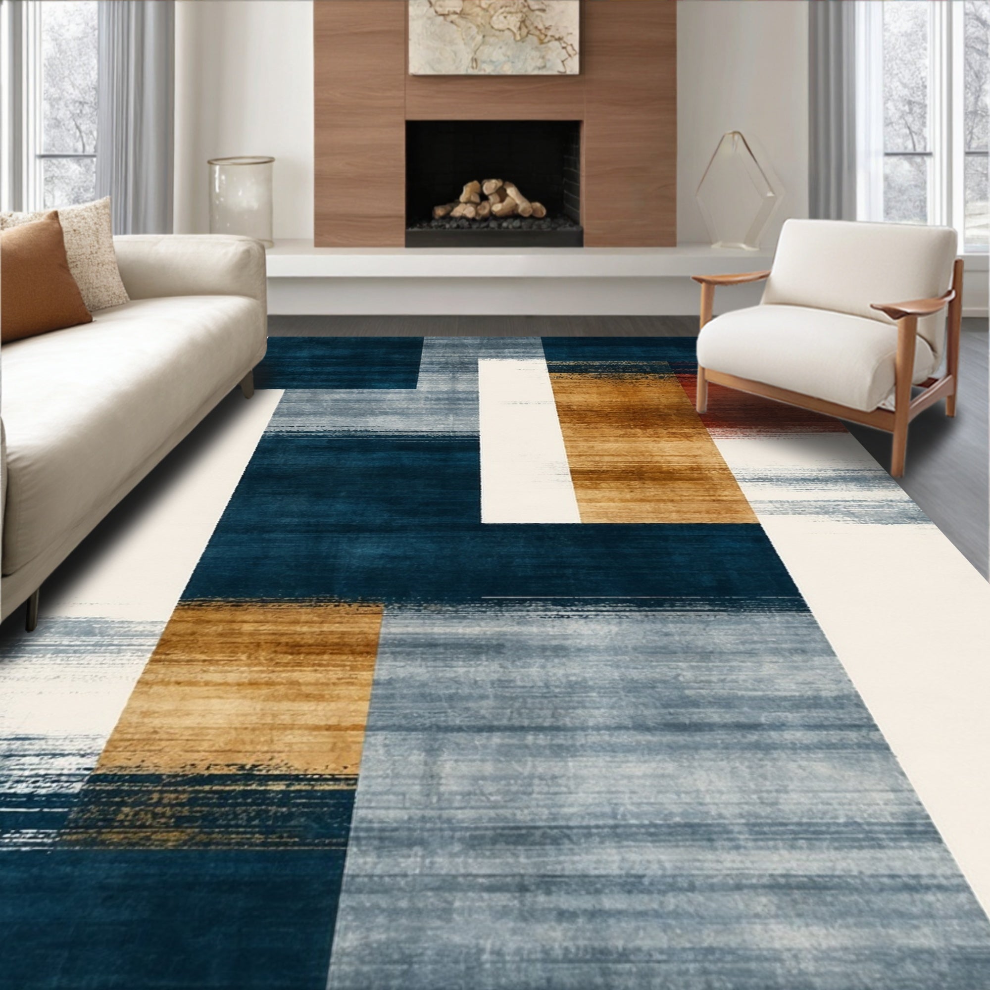 Vintage Modern Abstract with Deep and Gold Accents(Blue)