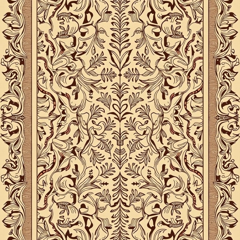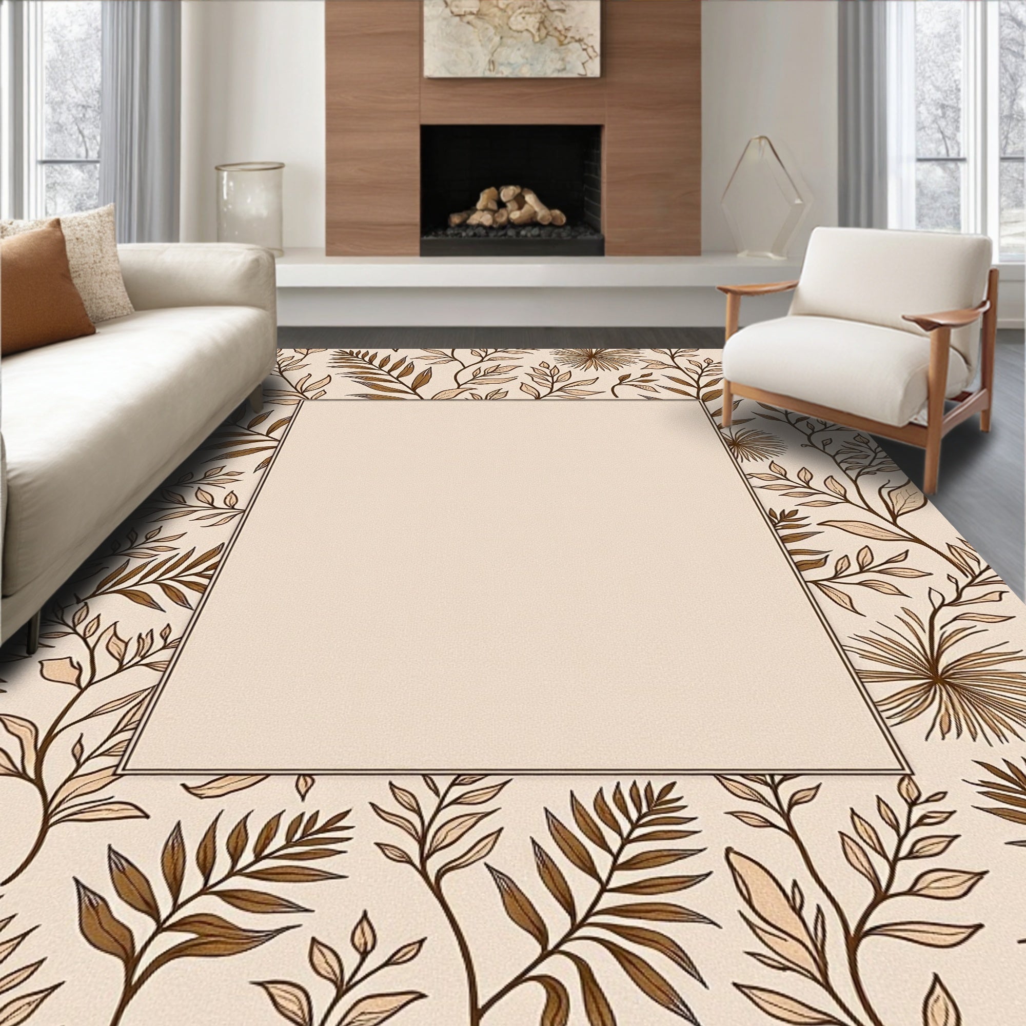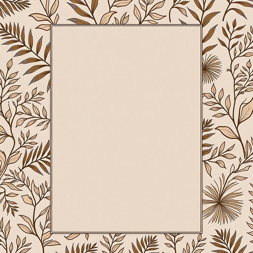 Vintage Boho Fern Scrollwork with Subtle Floral Touches(Beige)