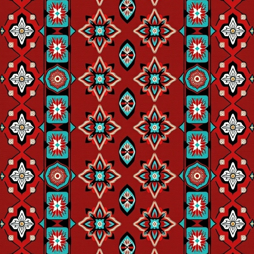 Urban Eclectic Interlocking Motifs with Boho Inspired Accents(Red)