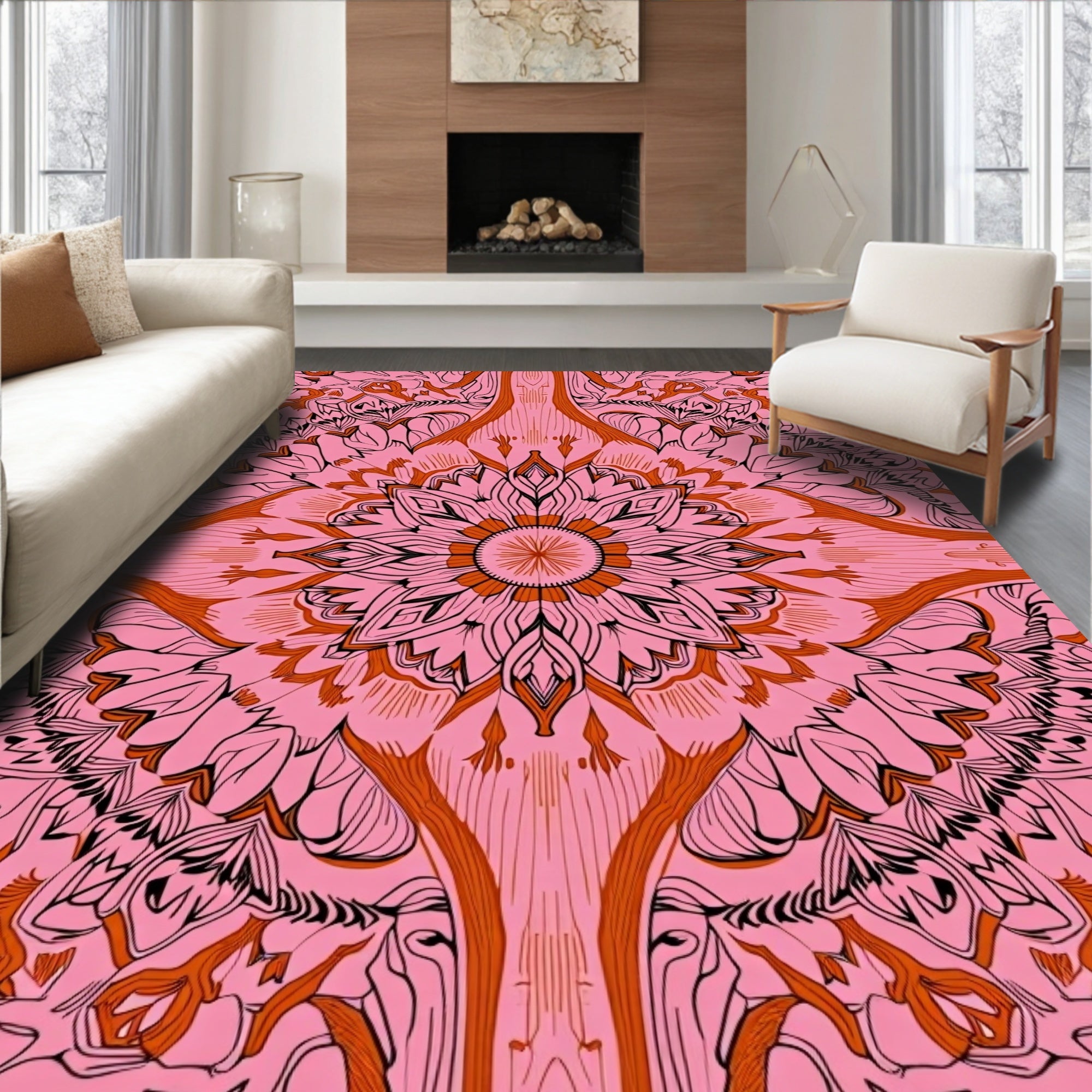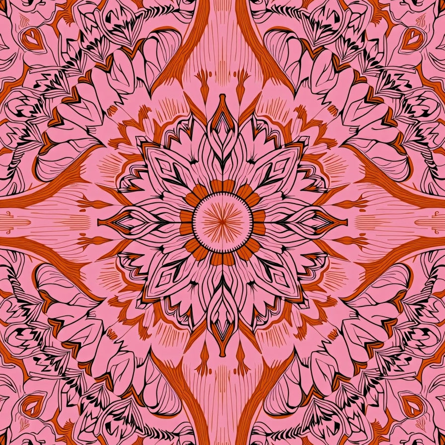 Retro Sunburst Mosaic with Abstract Boho Petals and Festive Details(Pink)