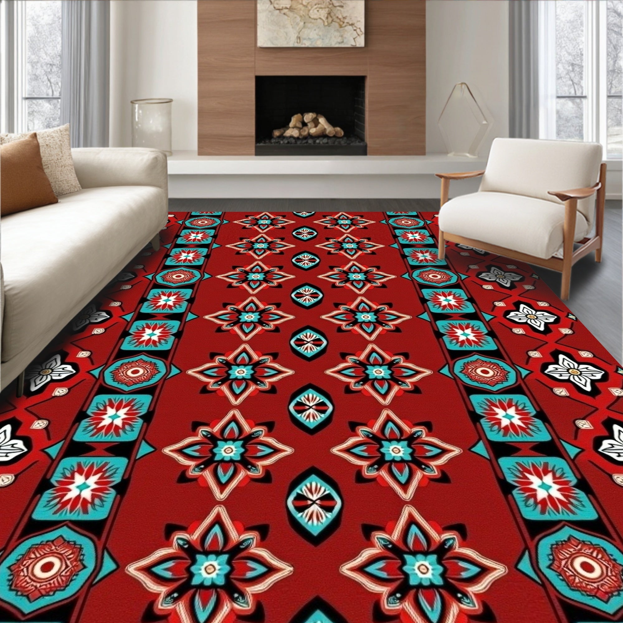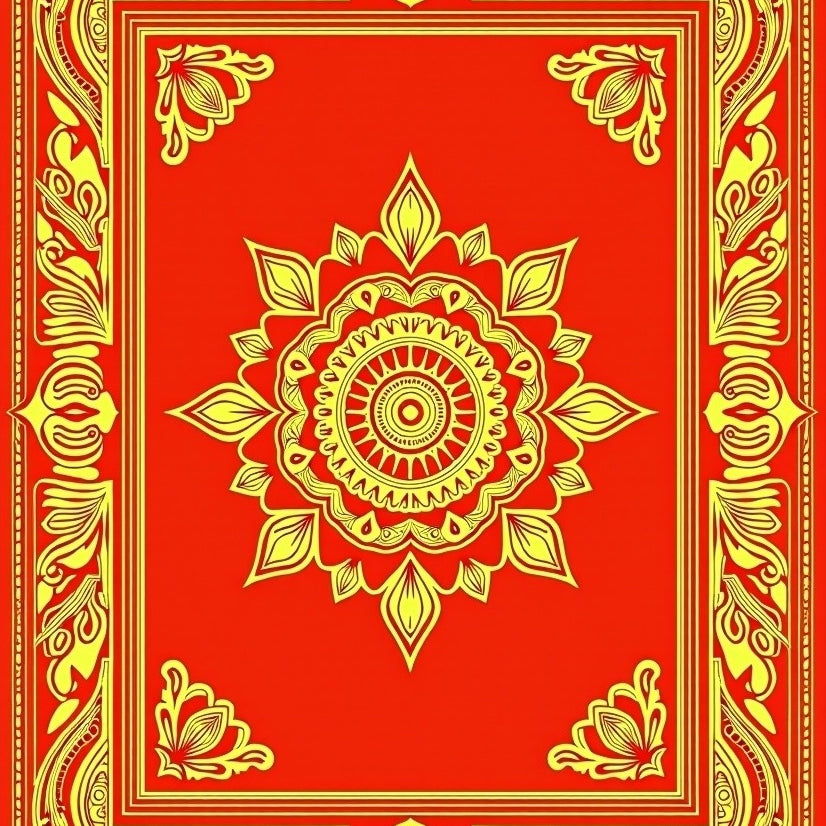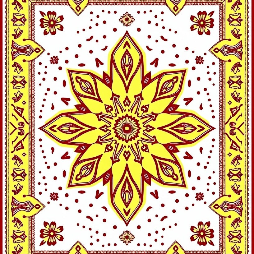 Sunburst Medallion Boho Motif with Ornate Festival Detailing(Red)
