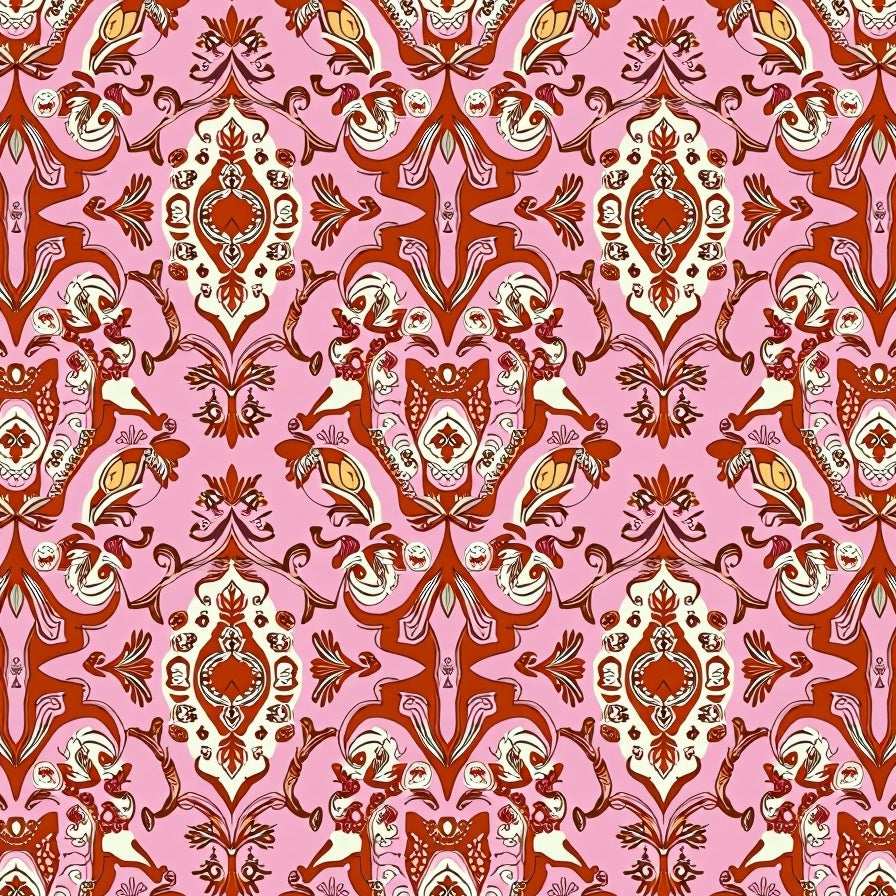 Boho Paisley Garden with Swirling Botanical Motifs(Pink)