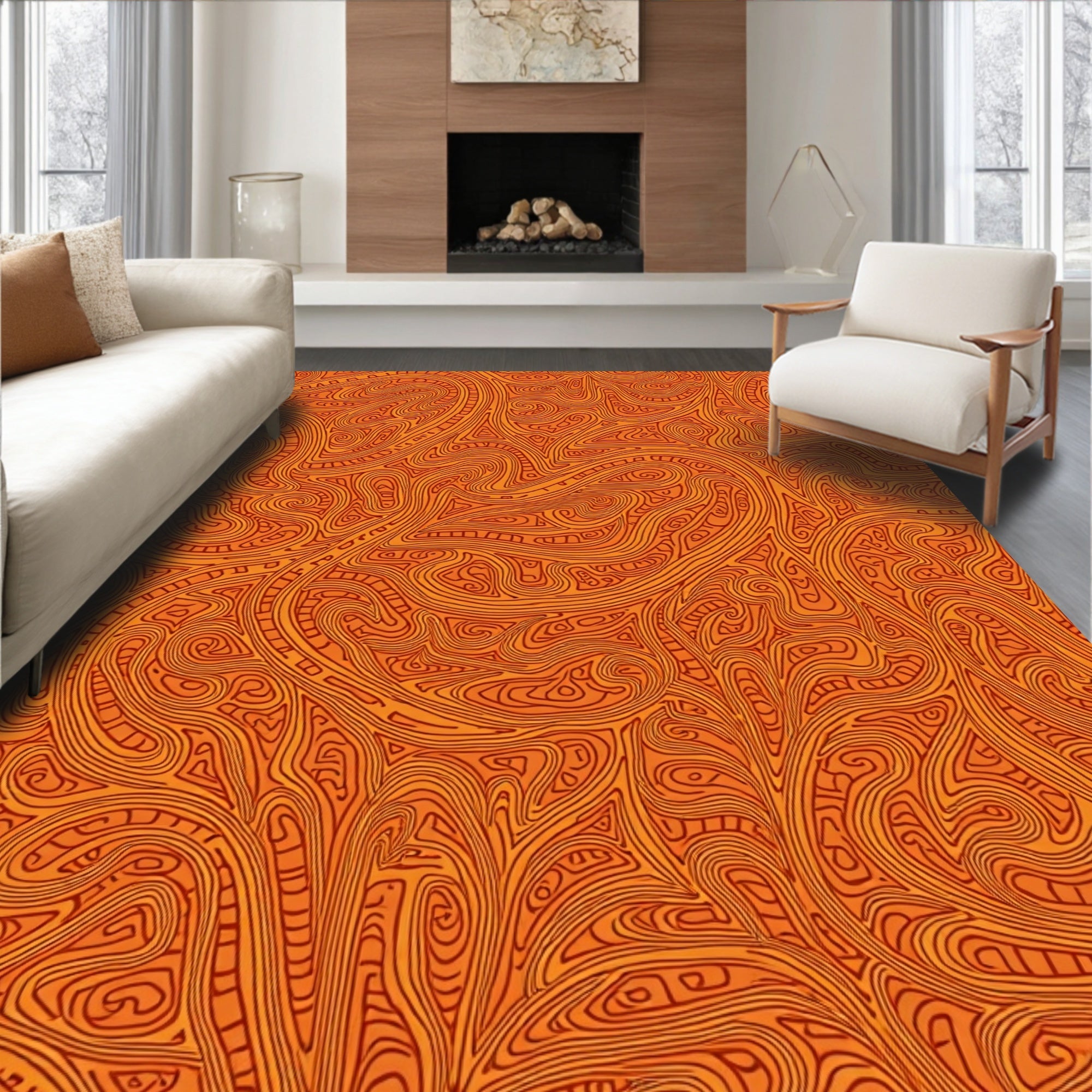 Paisley Cascade Boho Design with Swirling Botanical(Orange)