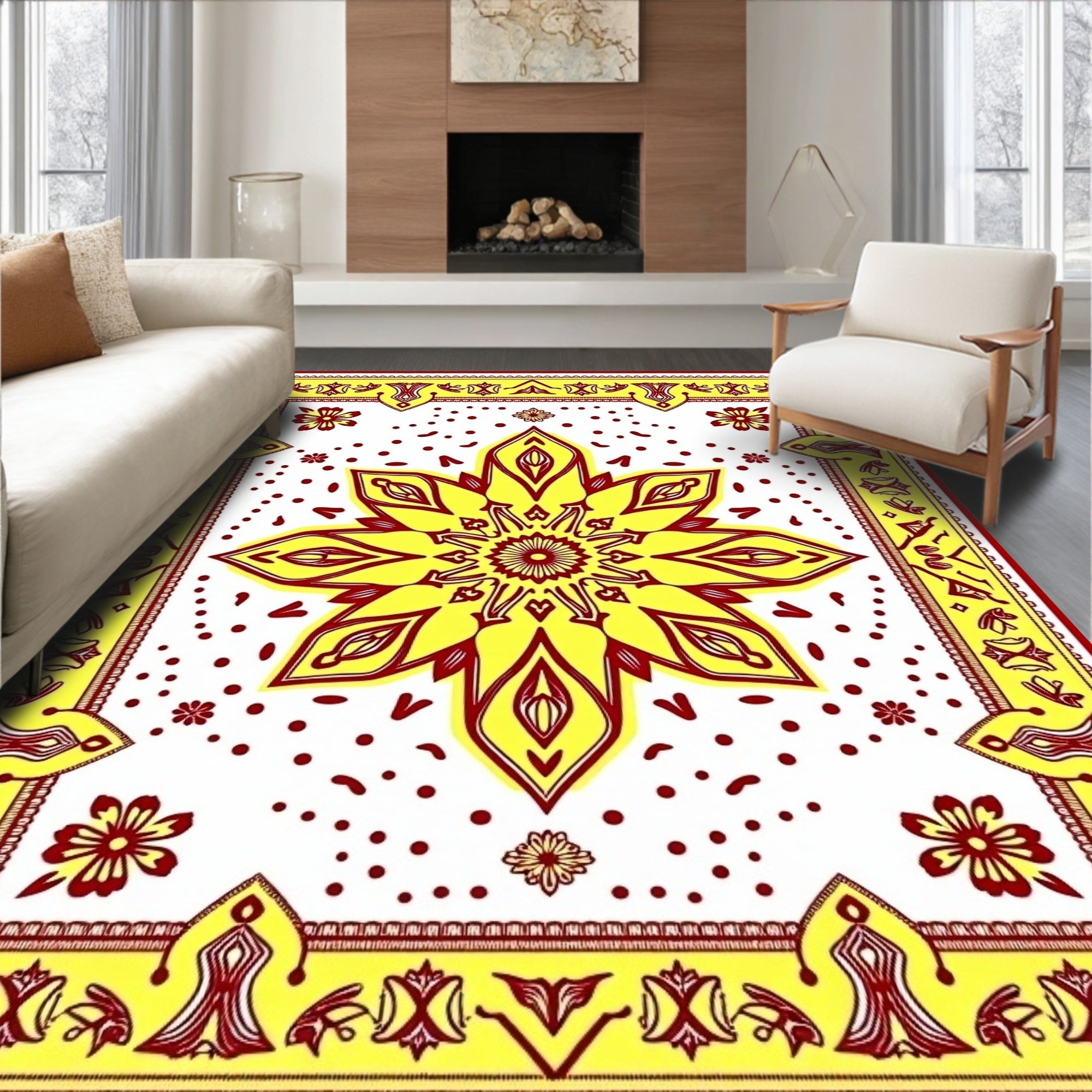 Vintage Inspired Ochre Floral Medallion with Subtle Boho Accents(Beige)