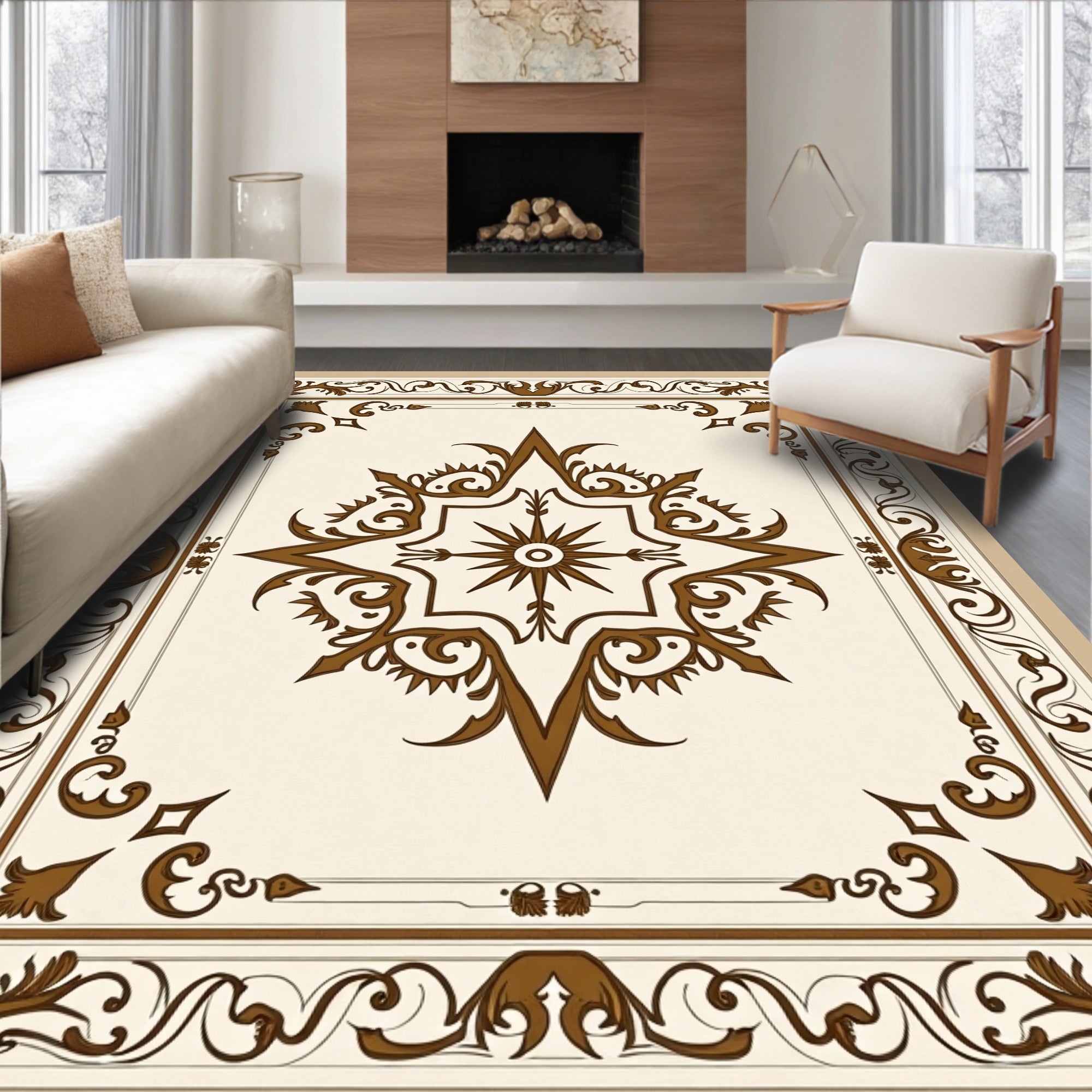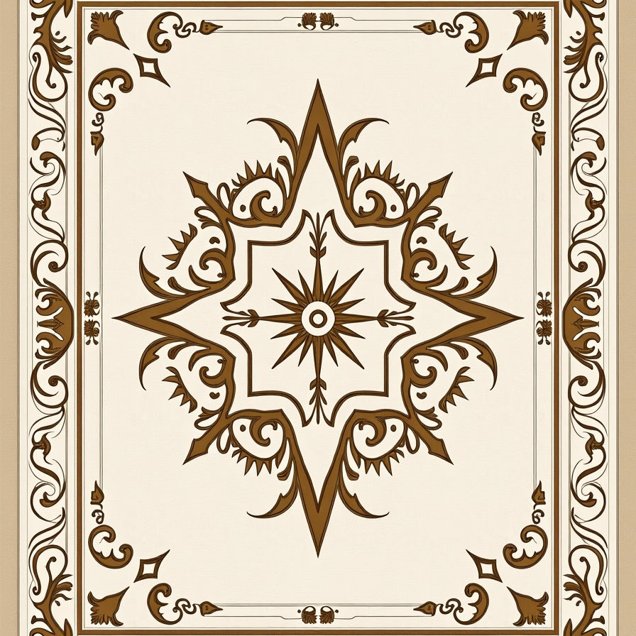 Vintage Medallion Ornate Central Motif with Intricate Border Design (Brown)